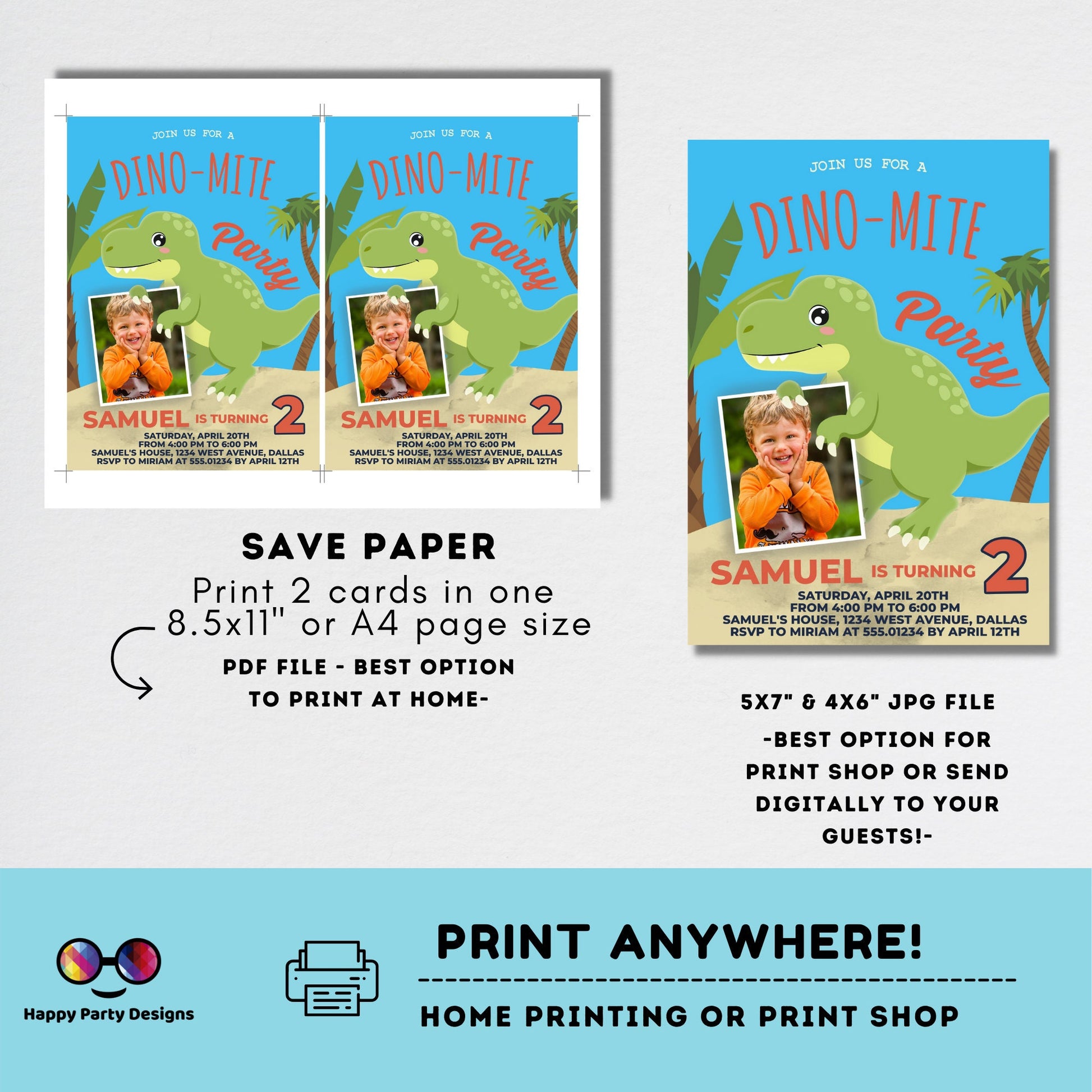 Editable Boy Dinosaur Birthday Invitation | Dino-mite Birthday Invitation | Dino Birthday invitations | Cute Dinosaur Birthday Invitation