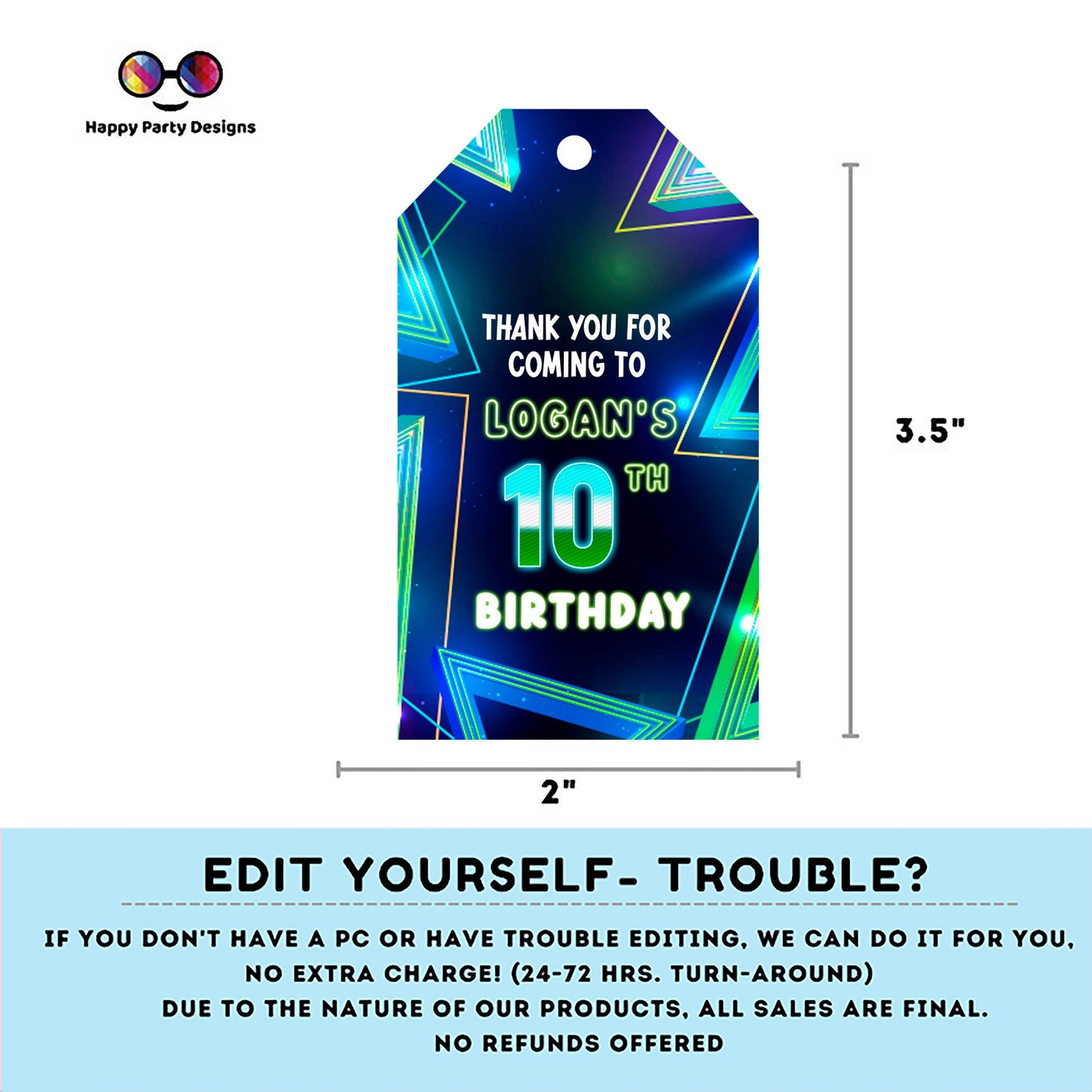EDITABLE Boy favor tag | Neon Glow in the dark Party thank you tag | Birthday Boy tag | Neon Blue Green Birthday | glow blue tag #K185