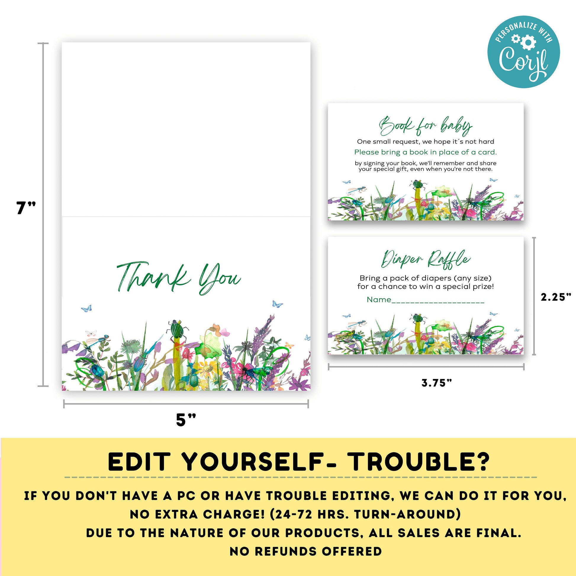 EDITABLE bugs Baby shower invitation bundle | diaper raffle, books for baby, thank you tag, thank you card | insects baby shower | #B27