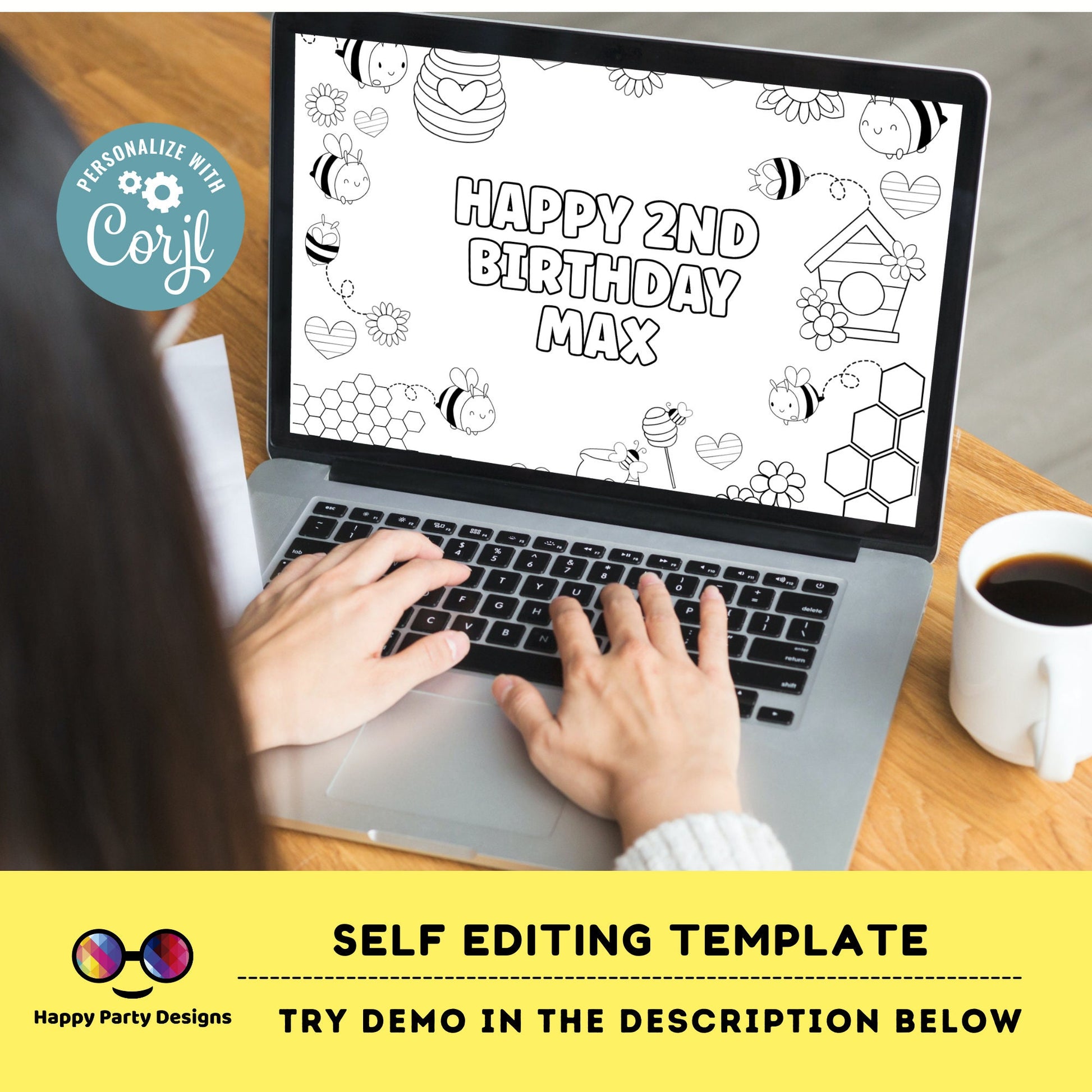 Editable bumble bee coloring page | Placemat coloring page | Any Age | Baby shower | Baby shower activity | party placemat | Bumble bee