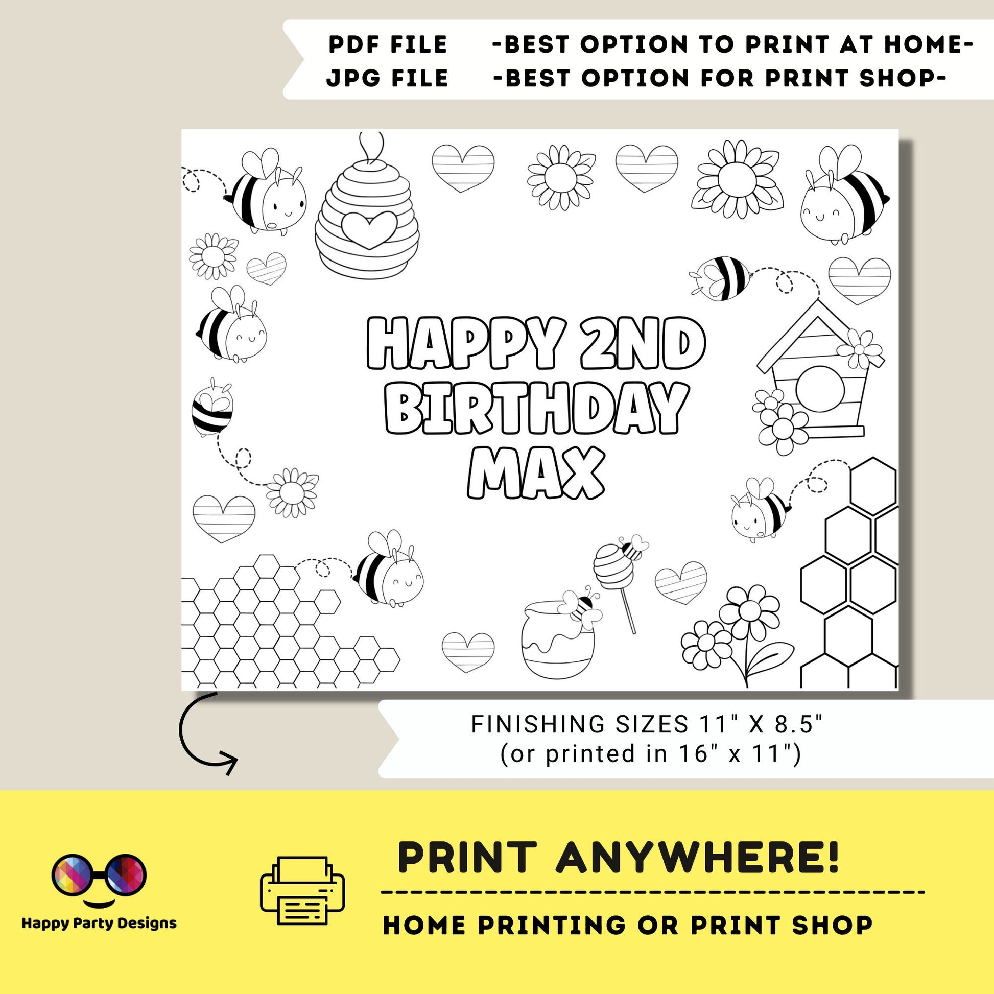 Bee Coloring Placemat, Honey, Bee, Personalized, Digital File, Printable, Custom, Bee Party, PJ Party, Coloring Matt, Activity Mat