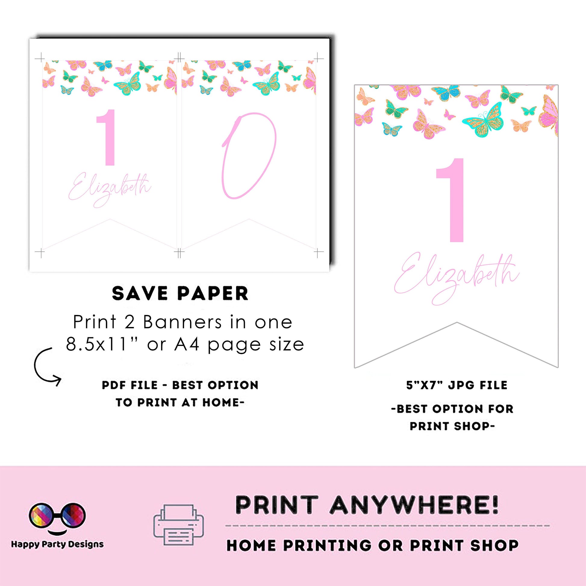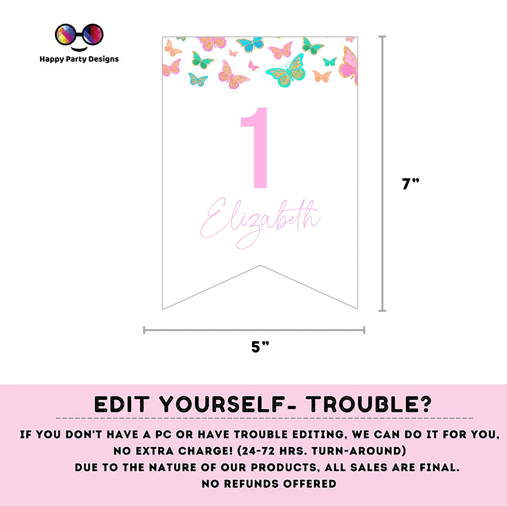 Editable Butterfly One Birthday Banner | Spring birthday | First Birthday banner | Butterfly birthday party | One banner to print #0002