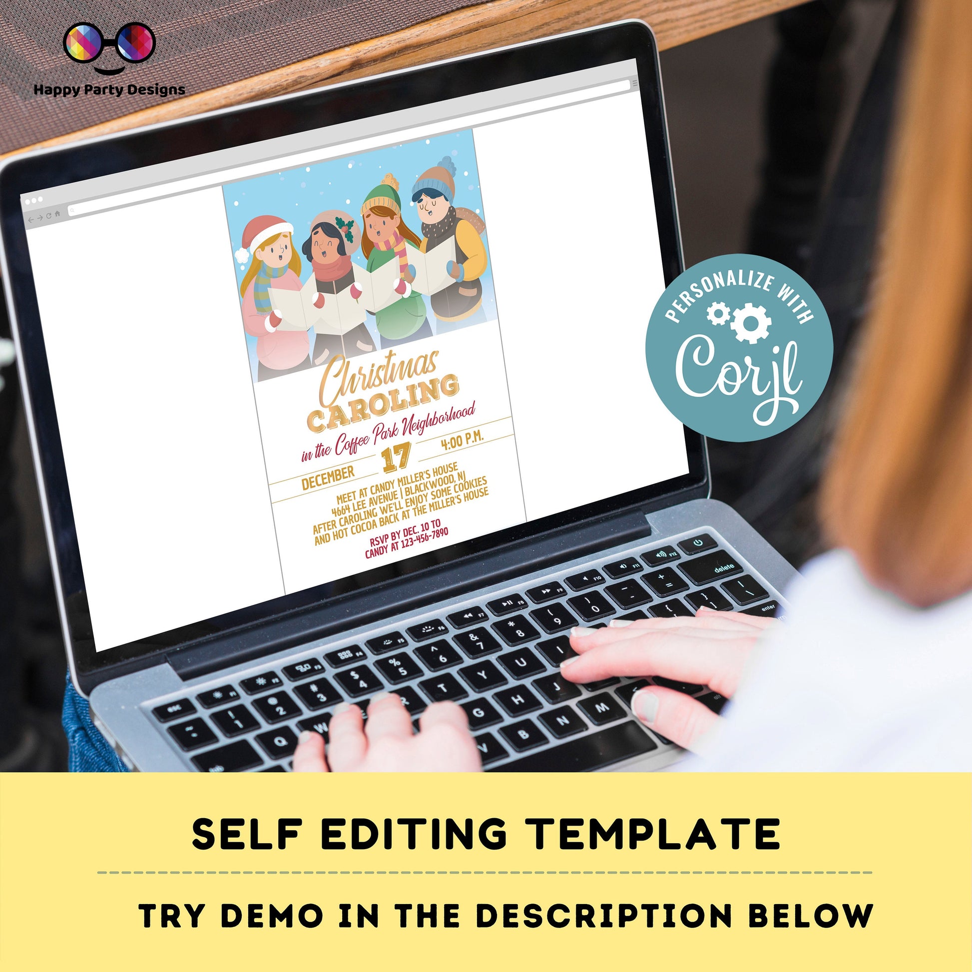 Editable Christmas Caroling Invitation | Christmas Party printable invite | Holiday Christmas Party Invitation | Christmas template