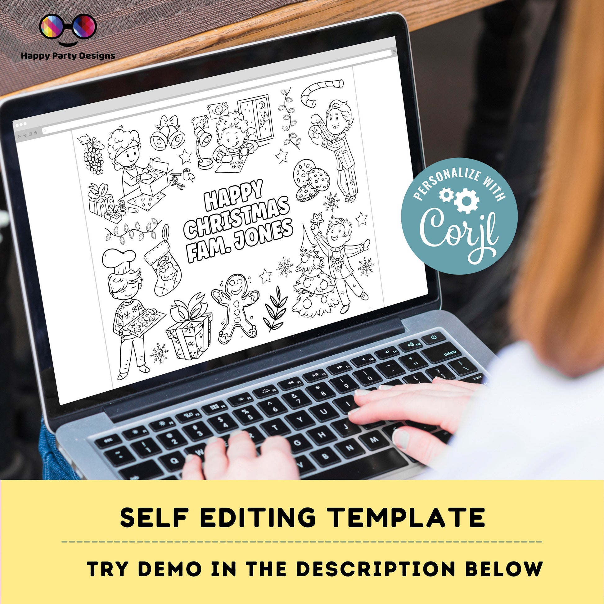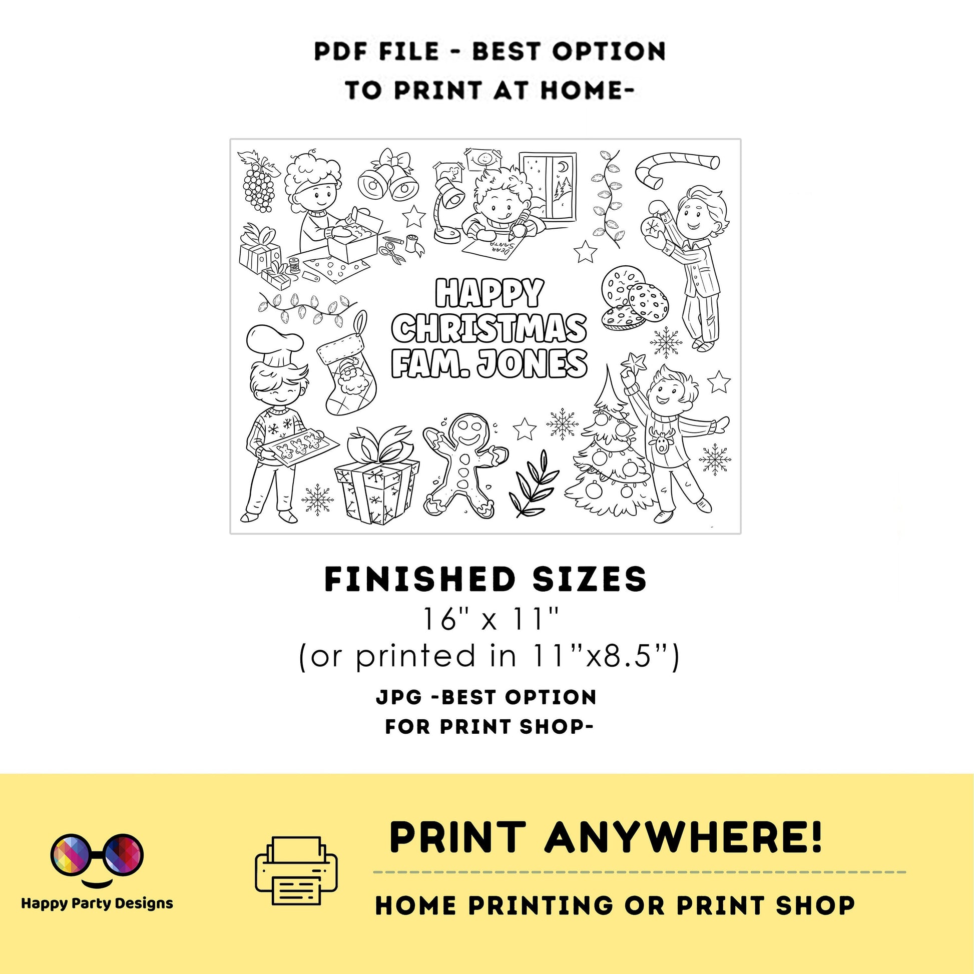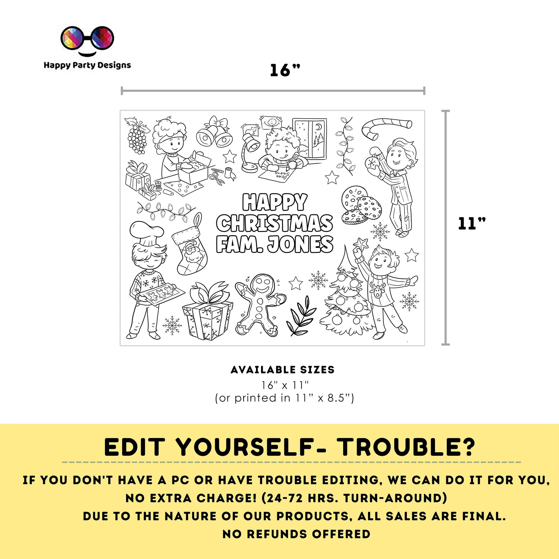 Editable Christmas coloring page | Placemat coloring page | Any Age | Christmas coloring placemat | X-MAS Party Activity Party favors #K257