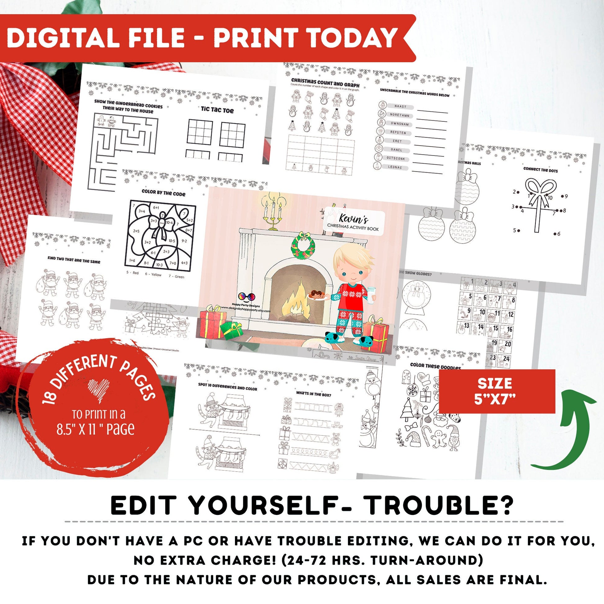 This kids editable Christmas activity book includes 16 pages of amazing festive fun and a totally personalized cover with your child's name!