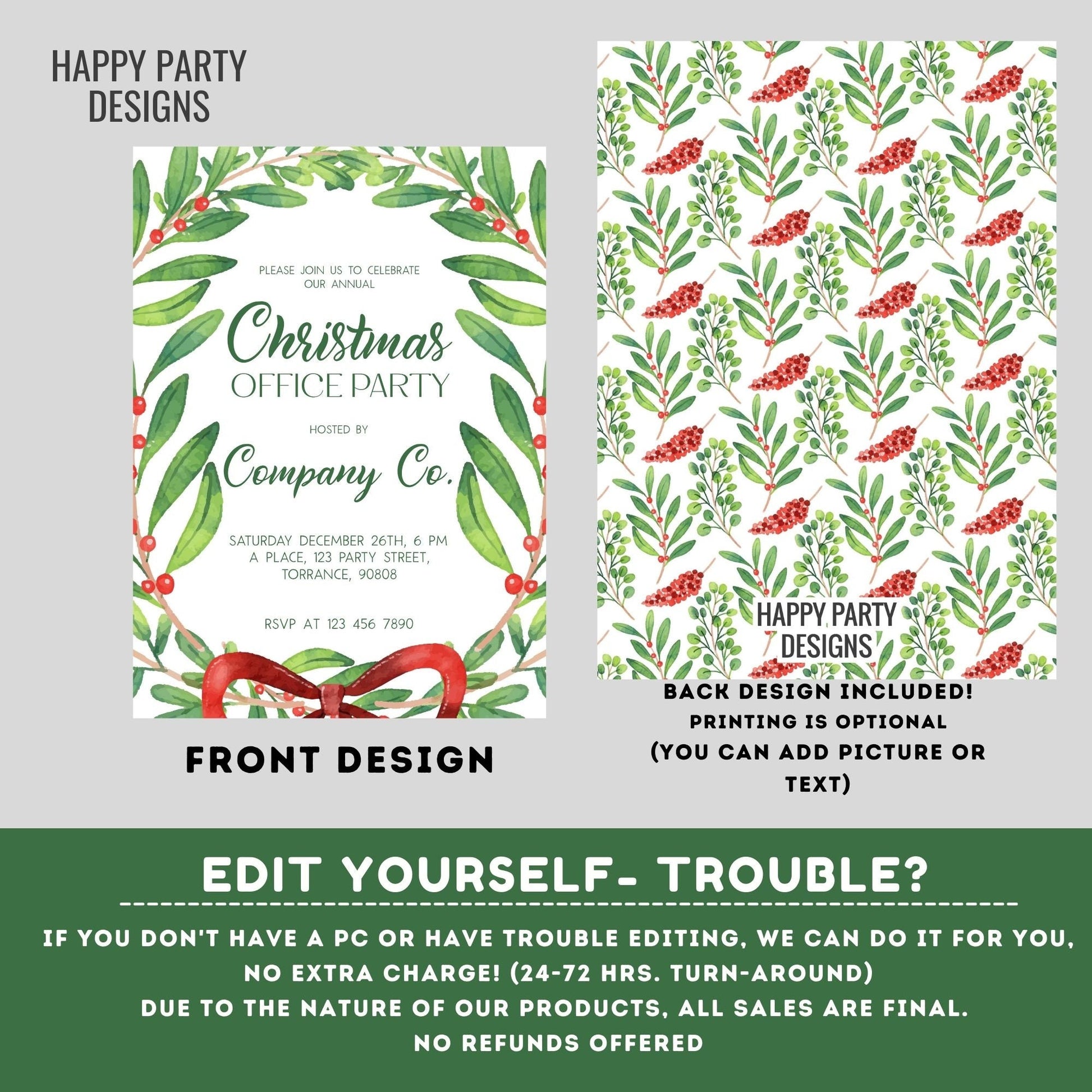 Editable Christmas office Party Invite | Christmas Party printable invite | Holiday Christmas Party Invitation |Christmas Dinner invite #A41