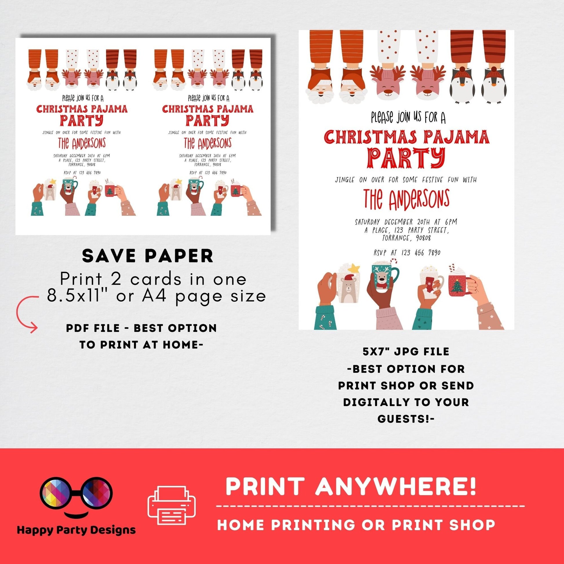 Editable Christmas pajama Party Invite | Christmas Party printable invite | Holiday Christmas Party Invitation |Christmas Dinner invite #A42