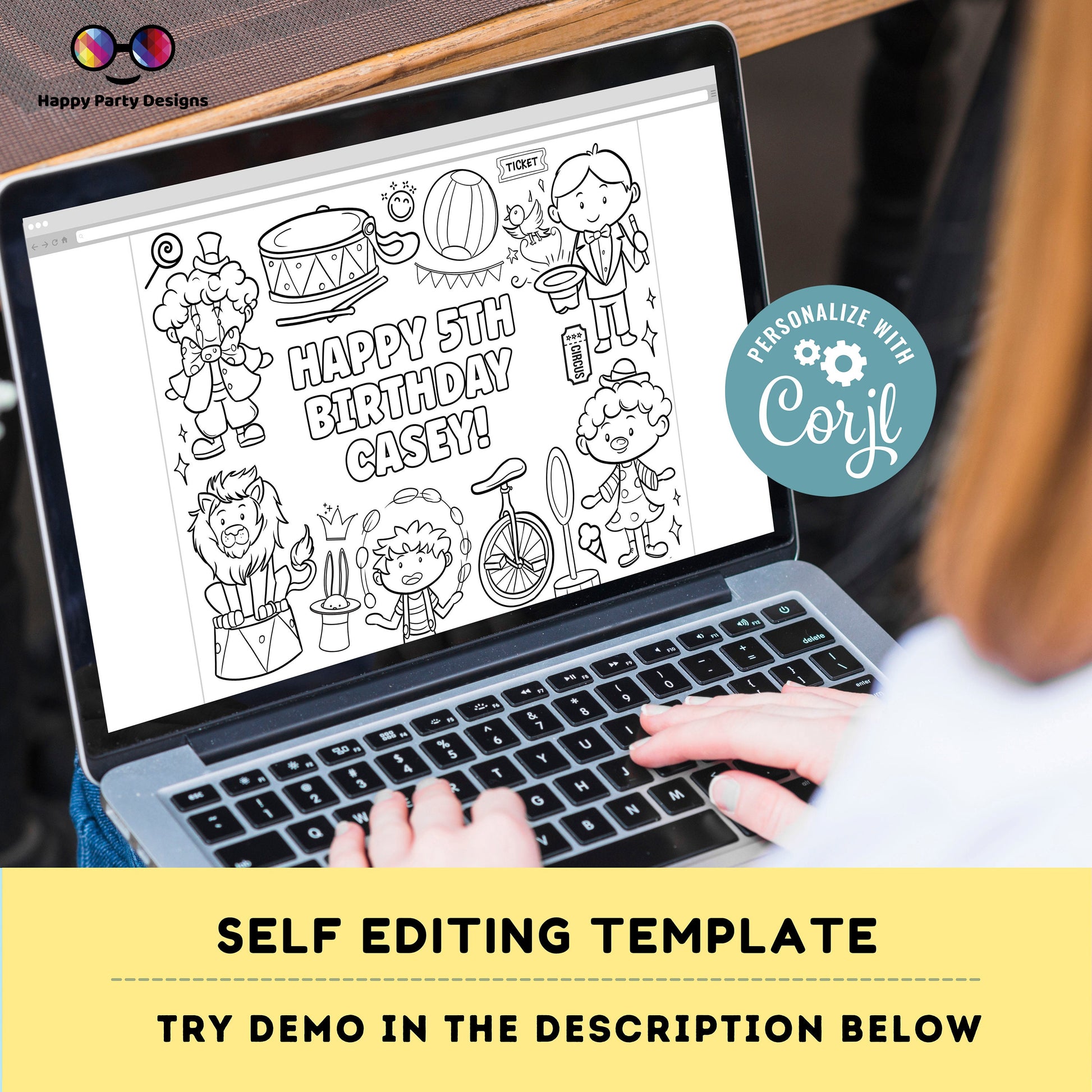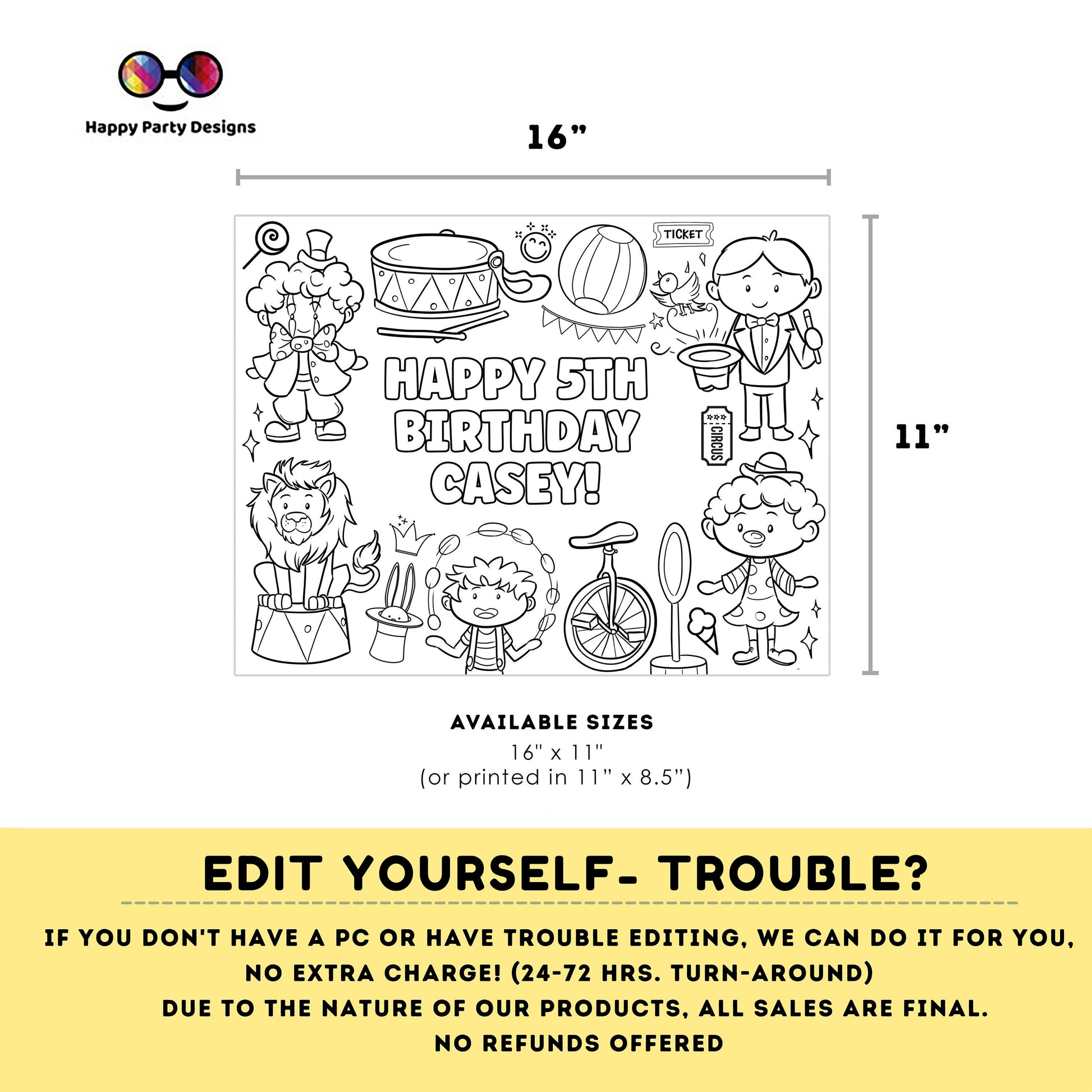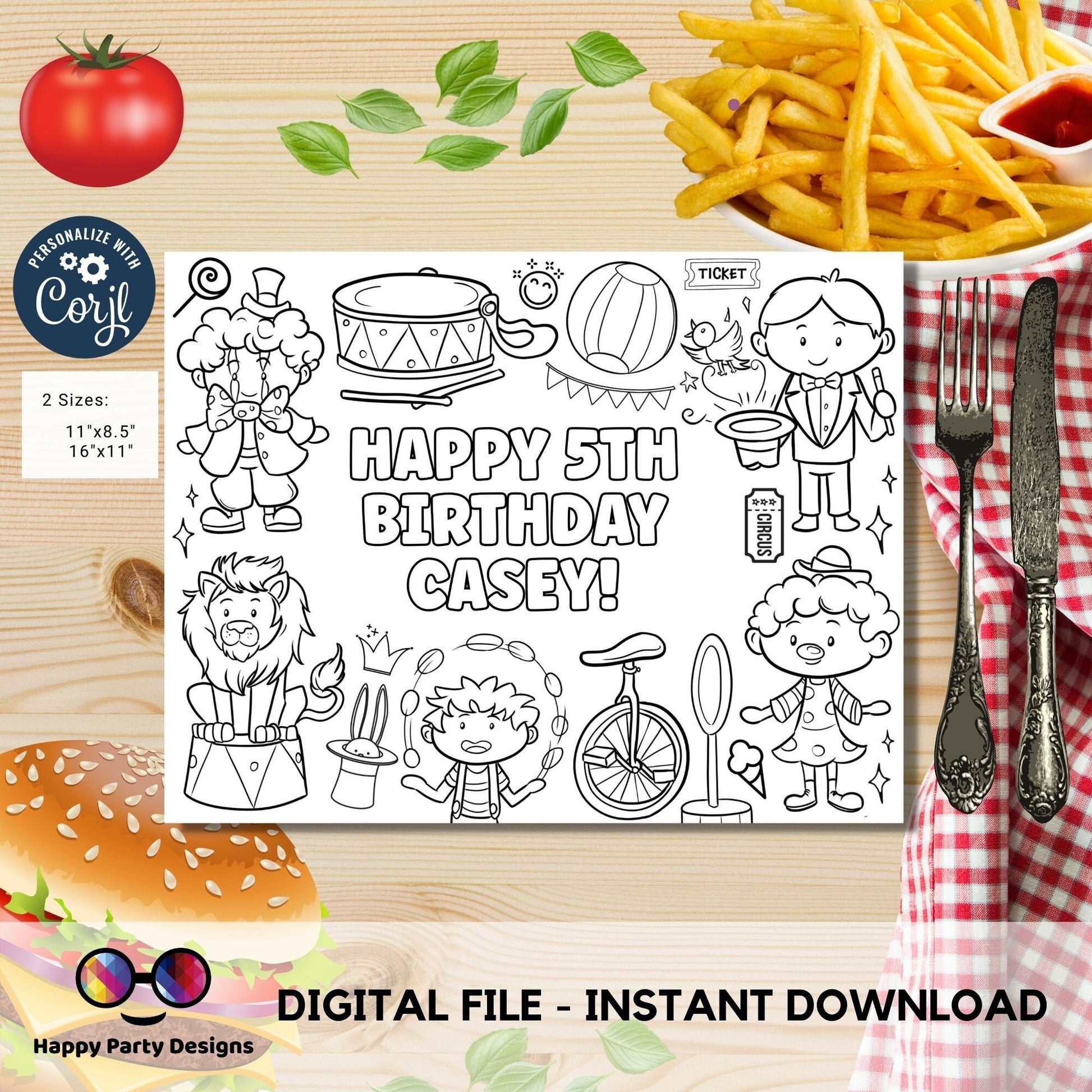Editable circus coloring page | Placemat coloring page | Any Age | Circus birthday party | Circus Party Activity | kids playing circus #K119