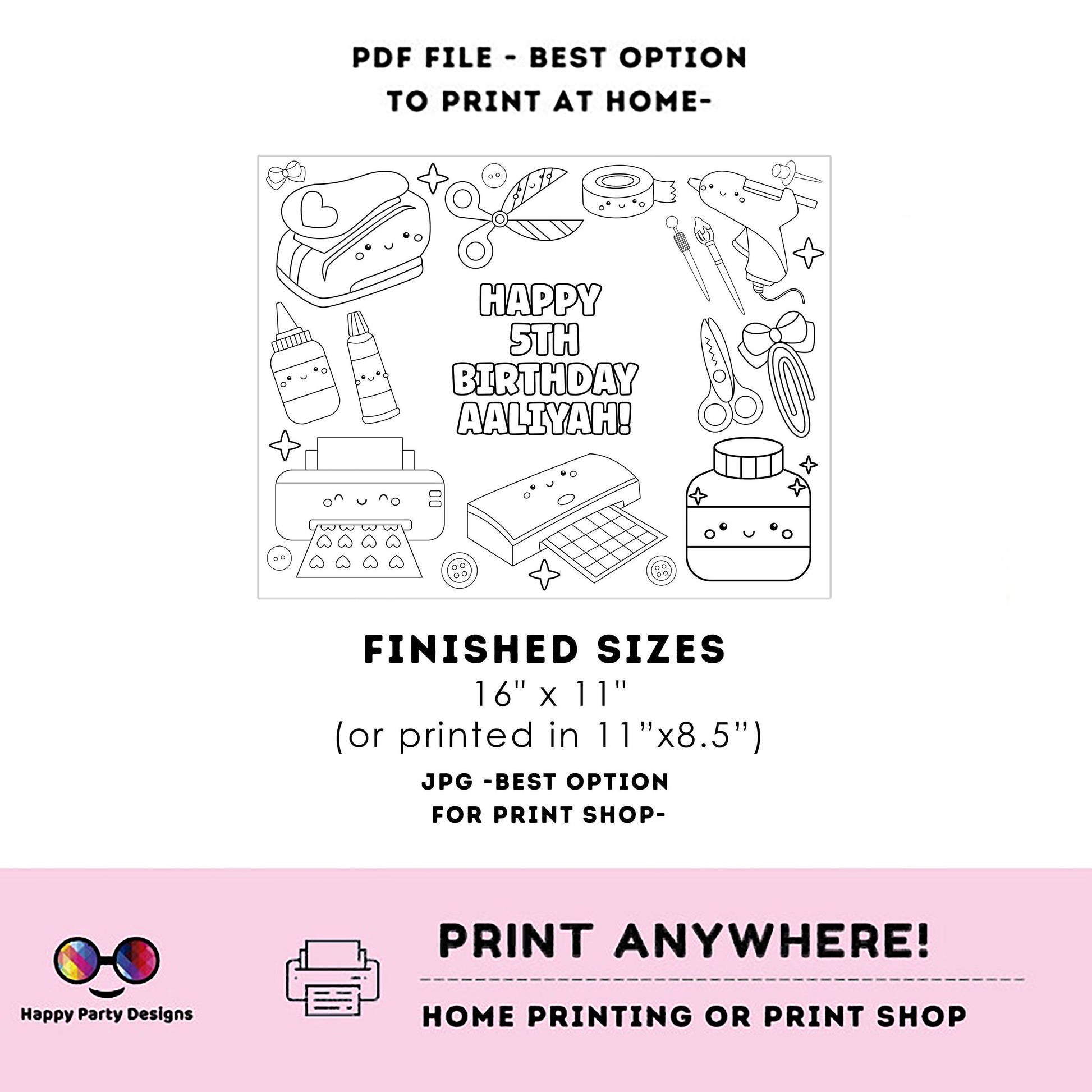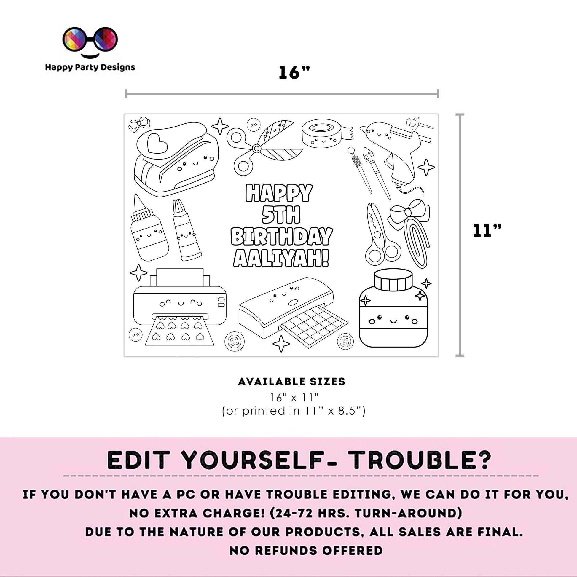 Editable Crafts Birthday coloring page | Placemat coloring page | Any Age | Crafts birthday Party Activity | Crafty bag filler #K162