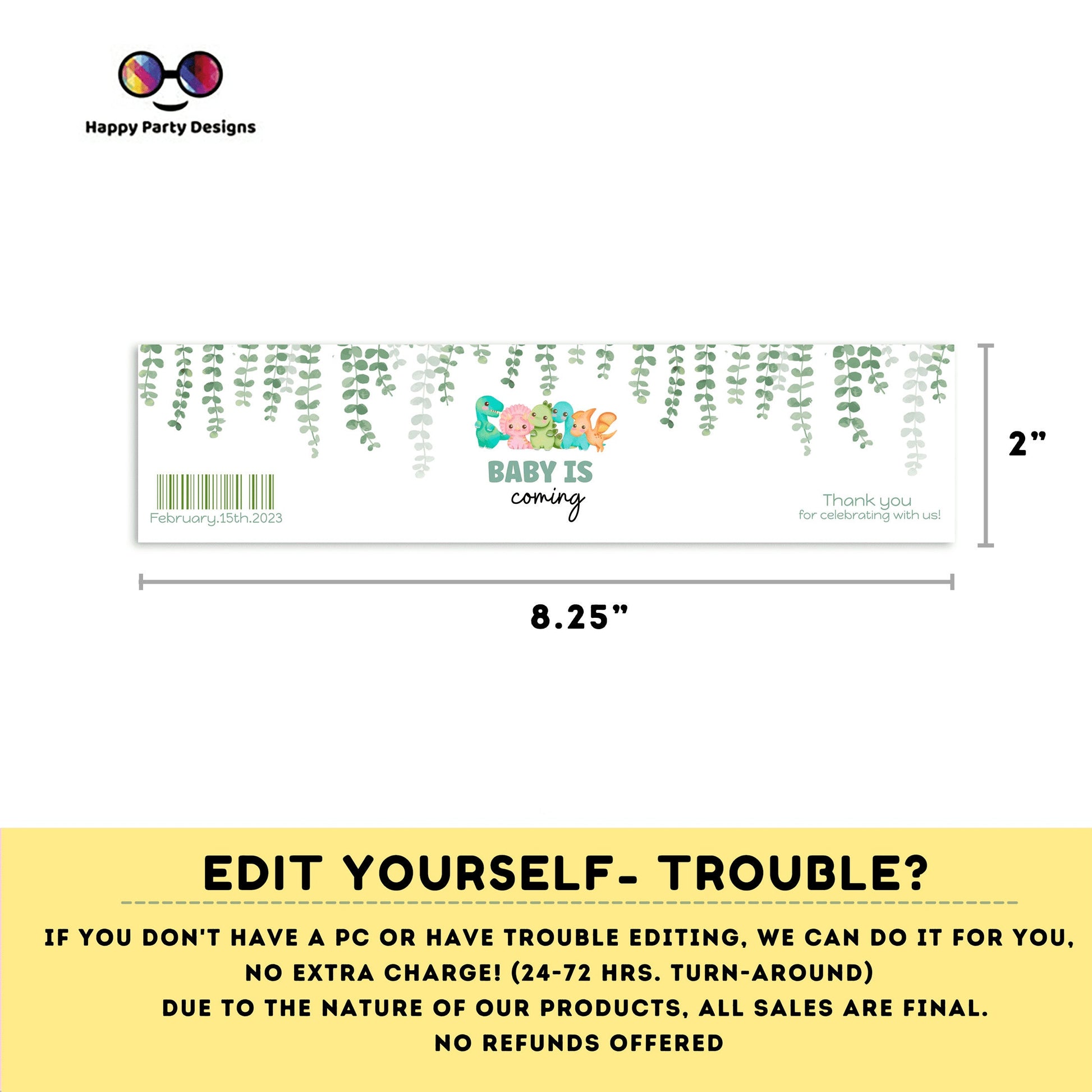 Editable dino baby shower water bottle labels | digital labels | printable baby shower labels | bottle labels | neutral gender baby #B15