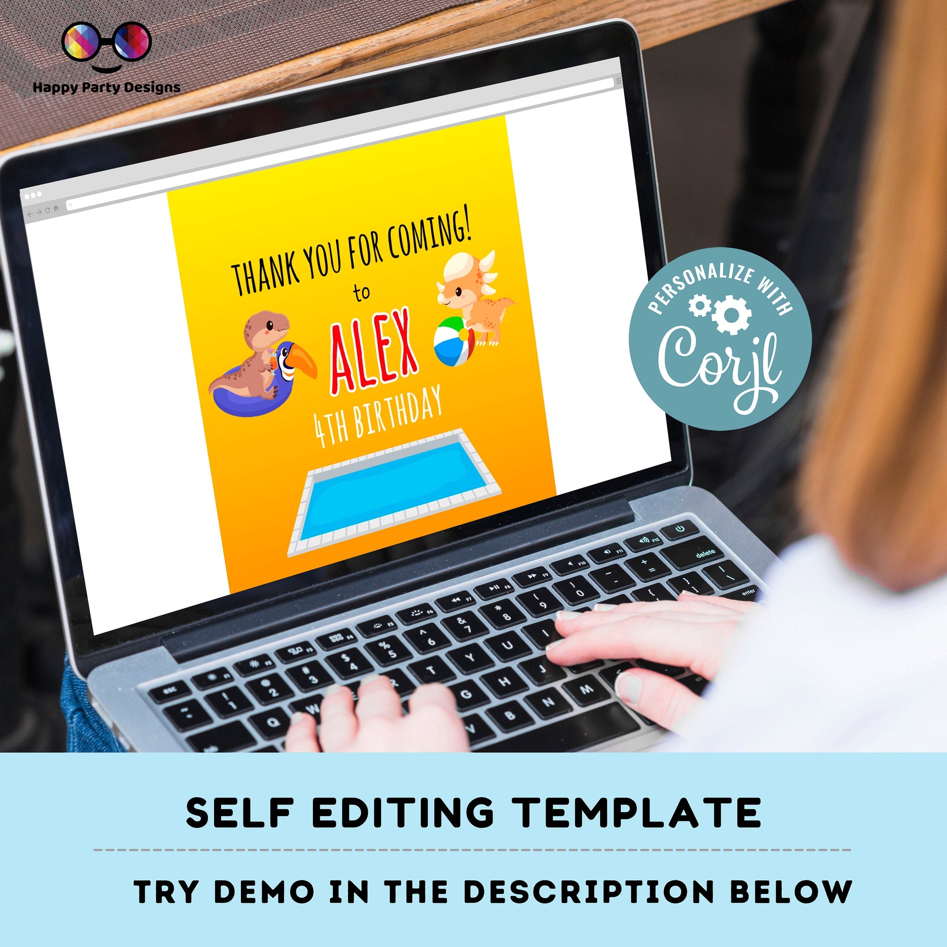 Dinosaur Pool Party Photo Thank you tag | Editable Dinosaur Pool Party tag| Printable Template | Editable Dinosaur Pool Party FAvor tag | Dinosaur Pool Party editable favor tag | Digital Invitation | Instant download stickers