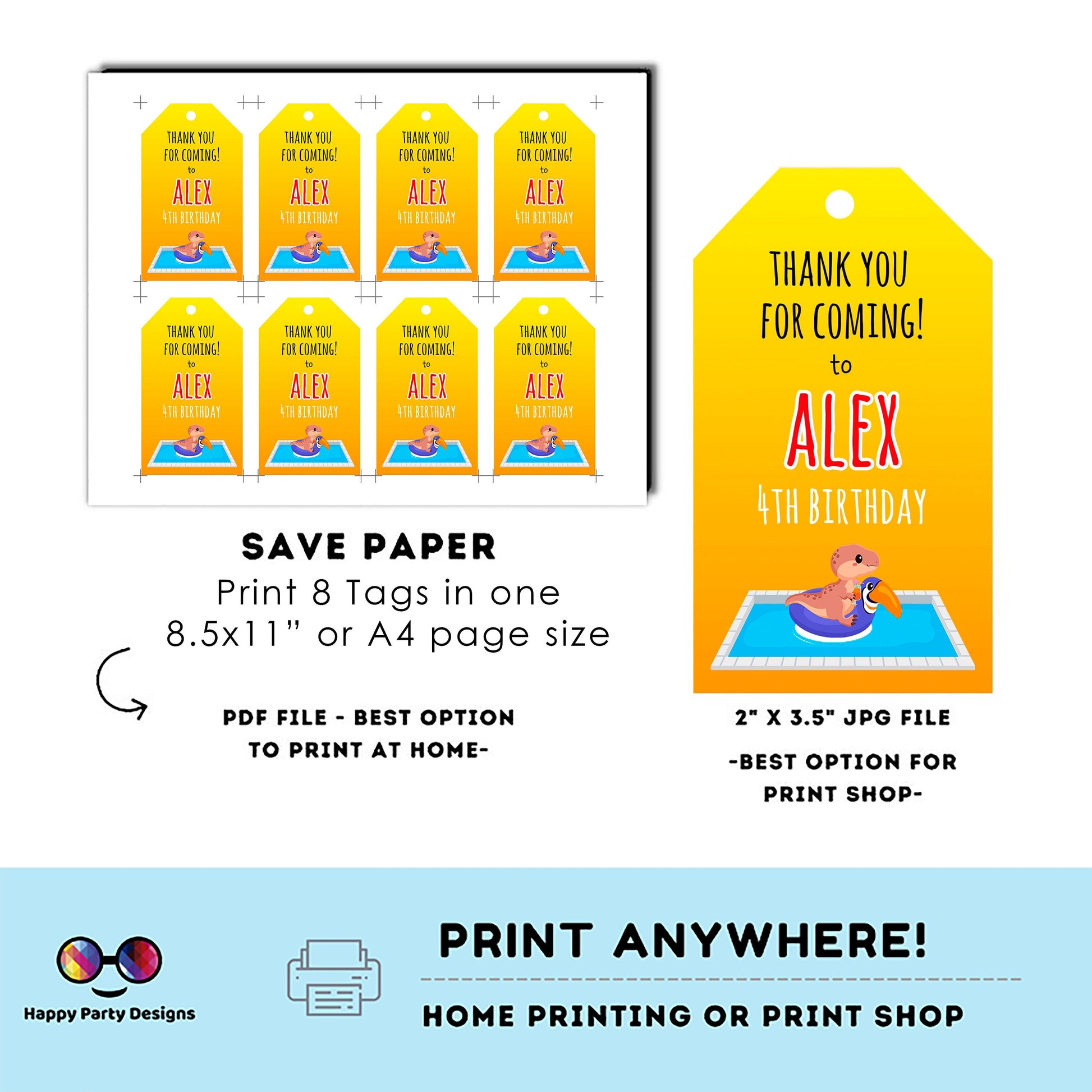 Editable Dinosaur Pool Party Thank you tag | Digital Dinosaur Pool printable thank you tag | Birthday boy Dinosaur Pool Thank You tag #K83