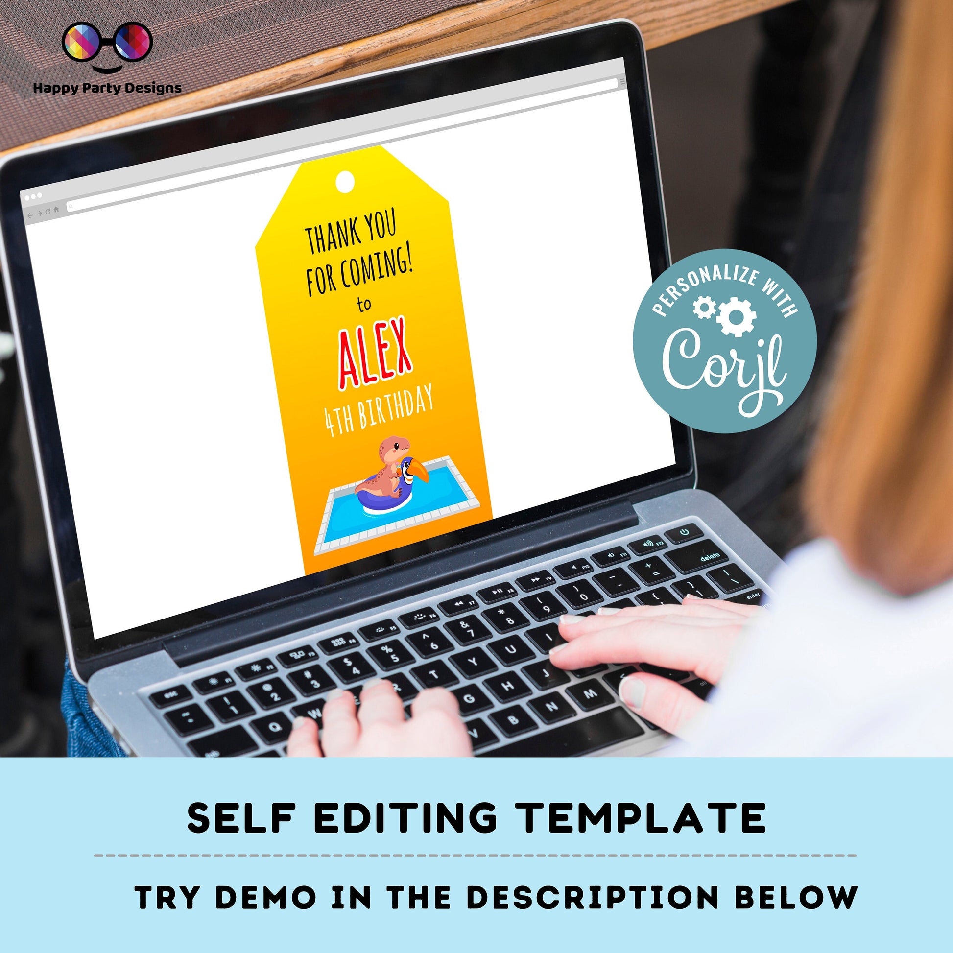 Dinosaur Pool Party Photo Thank you tag | Editable Dinosaur Pool Party tag| Printable Template | Editable Dinosaur Pool Party FAvor tag | Dinosaur Pool Party editable favor tag | Digital Invitation | Instant download