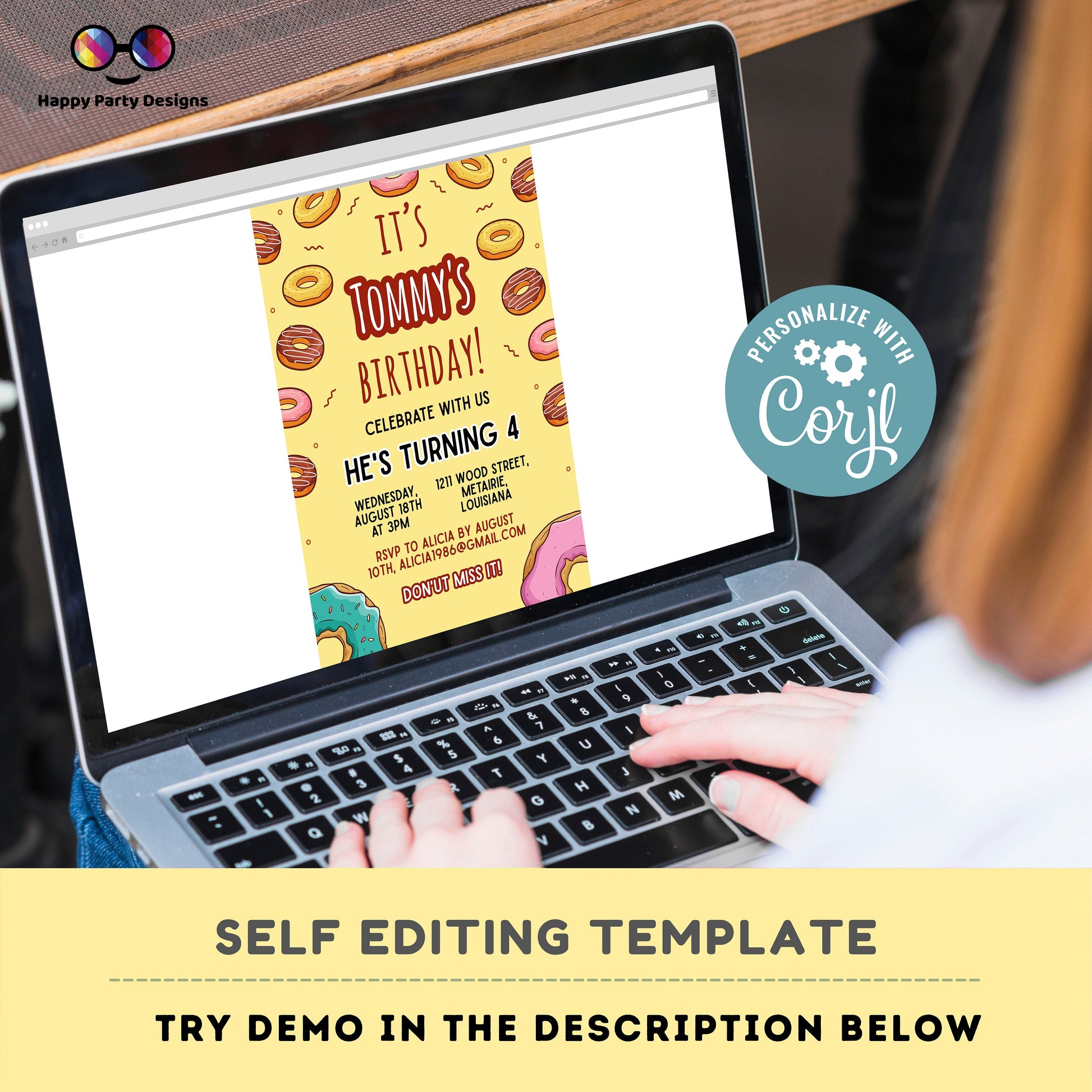 Donut birthday invitation. EDITABLE TEMPLATE WITH CORJL.COM