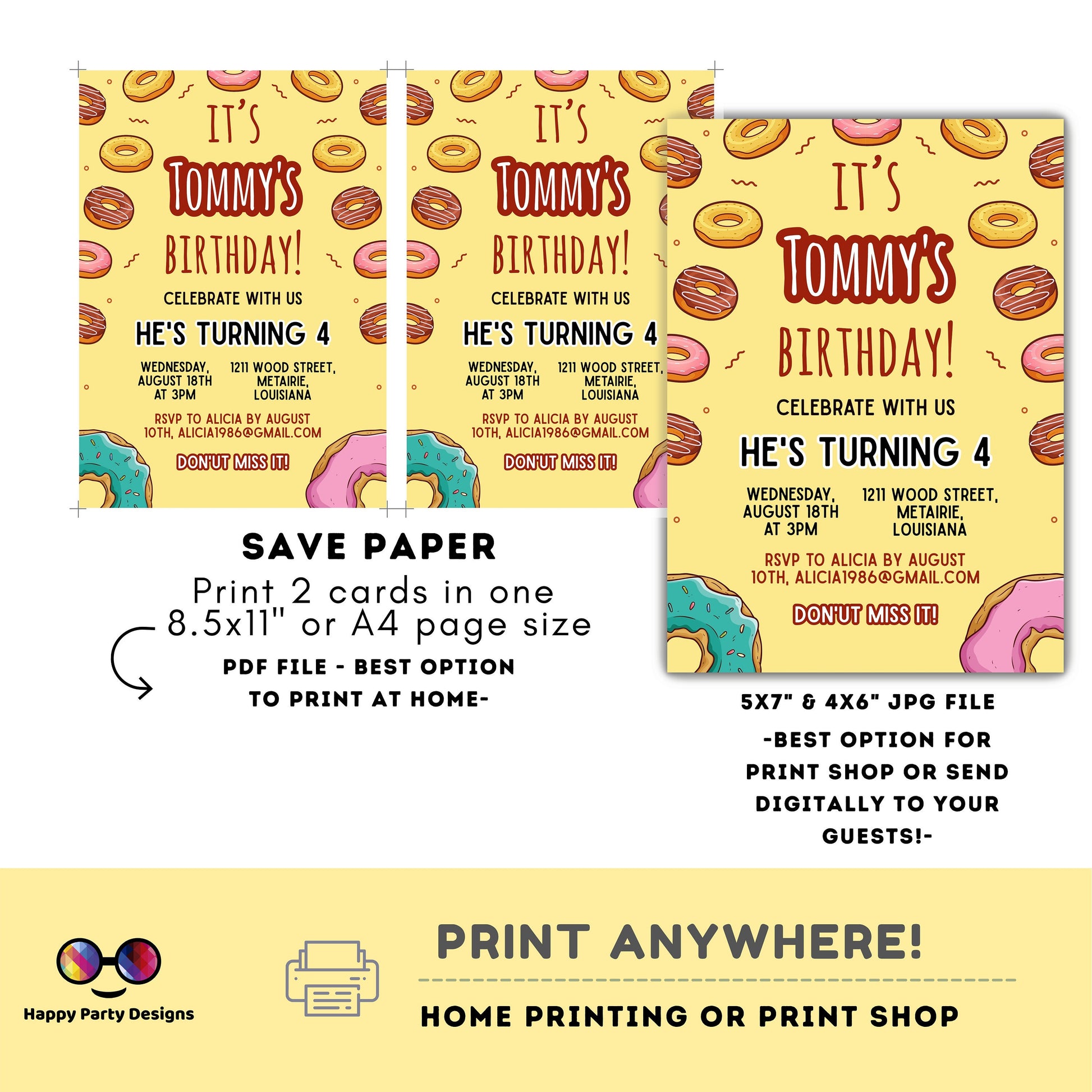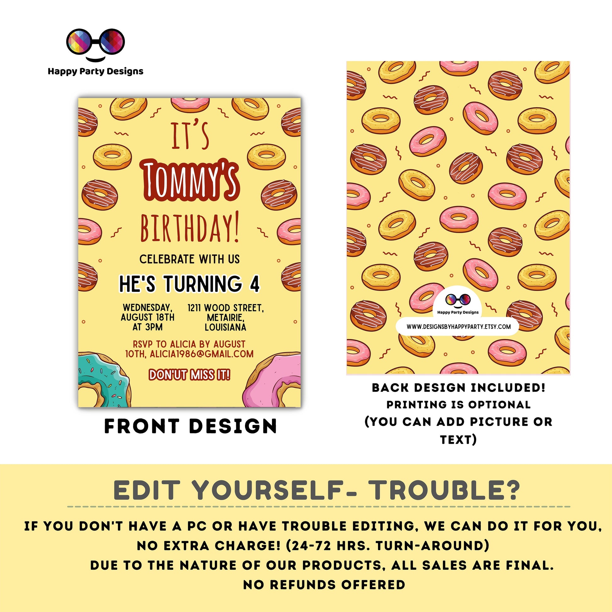 Editable Donut Birthday Invitation | Boy or girl Invitation | Donut Birthday invitations | Donut Birthday Invitation