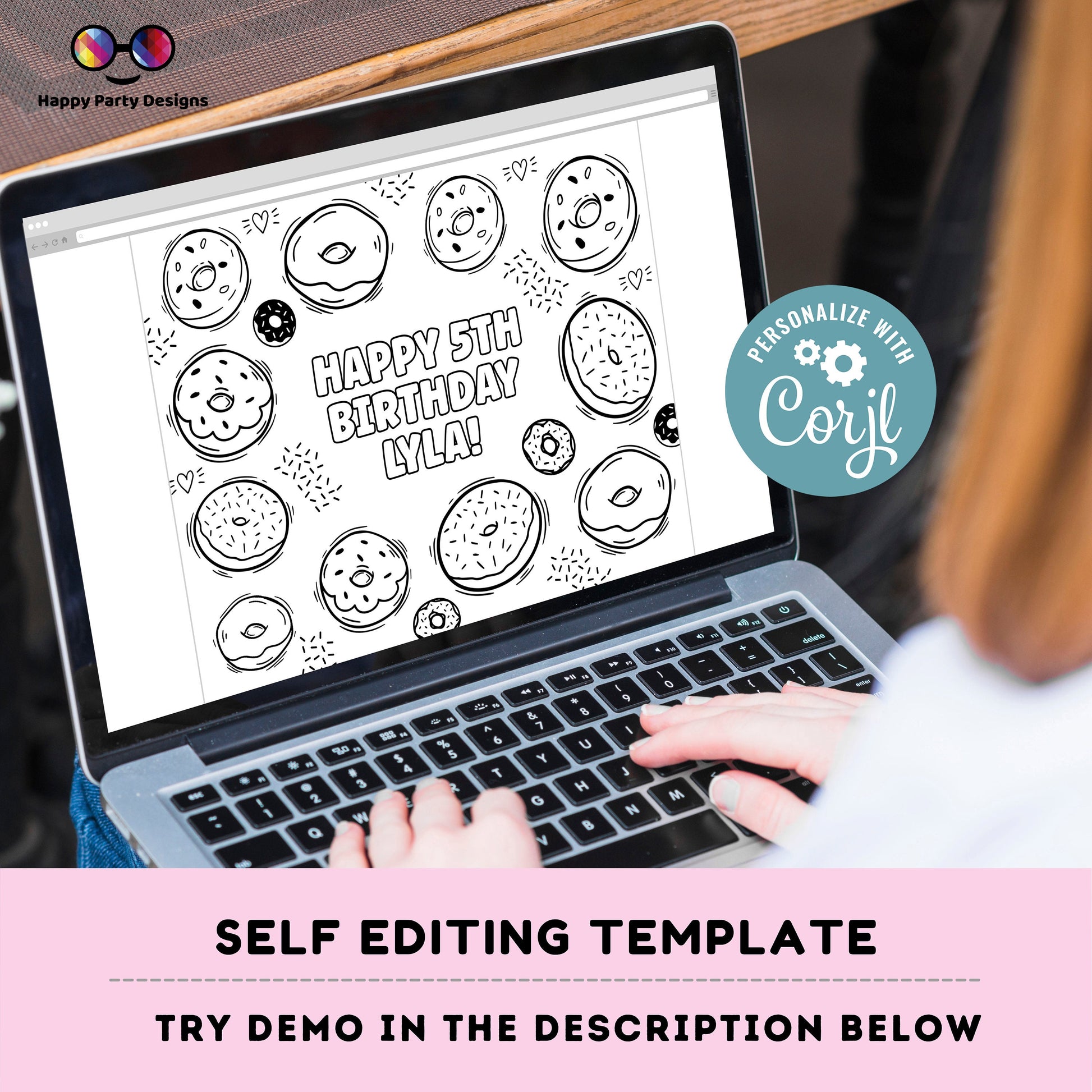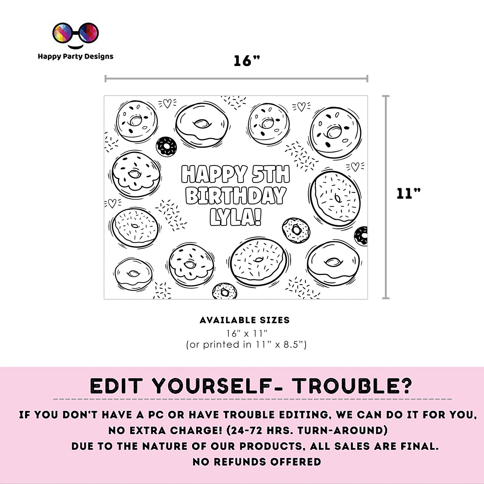 Editable Donuts coloring page | Donuts coloring page | Any Age | Cute Donut party | Donut Miss the Party - PArty Activity #K34
