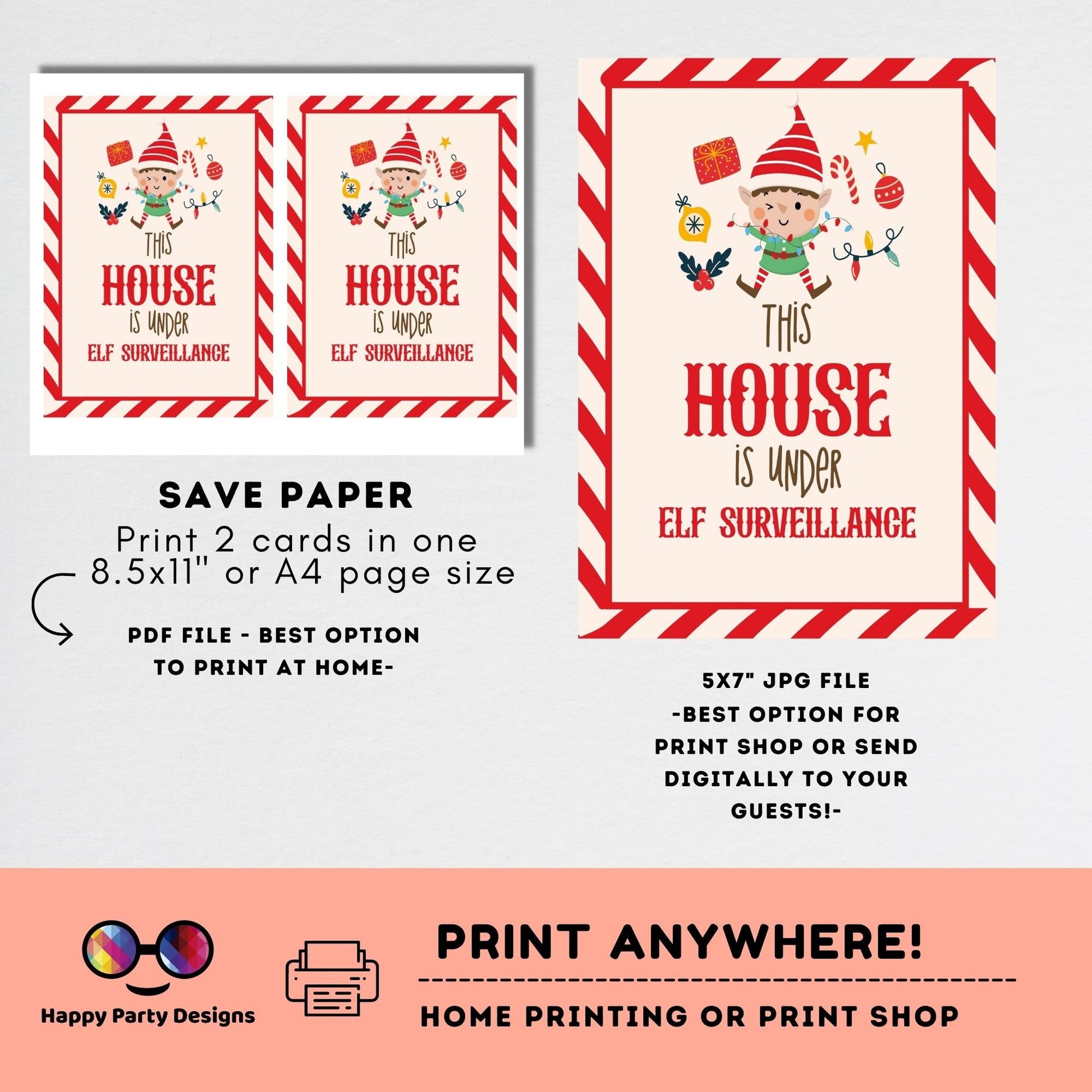 Kids Christmas Decor, Elf Decor, Printable INSTANT DOWNLOAD, Elf Surveillance & Camera Sign Elf Printable This House Is Under Elf Surveillance Sign Christmas Elf Activity Instant Download, Instant Download, Edit with Corjl.