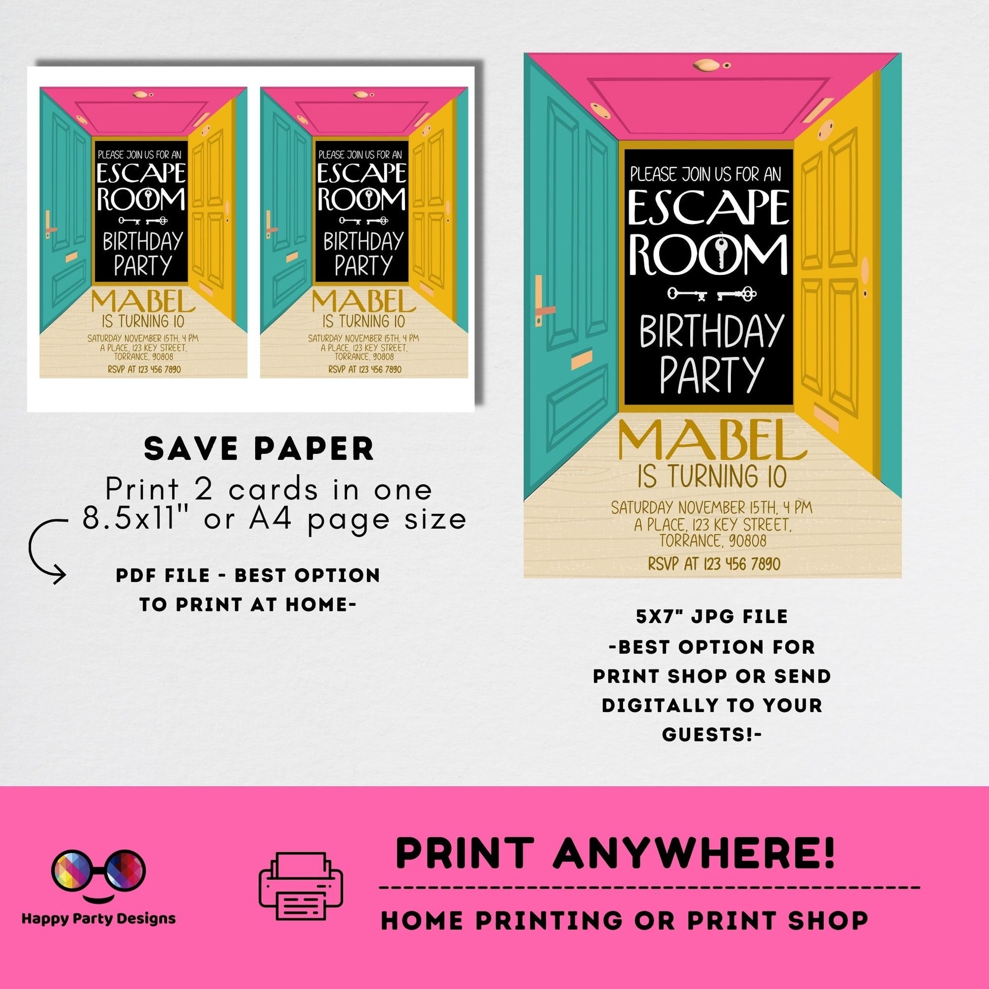 Escape room invitation. EDITABLE birthday party invite template. Mystery solving challenge. Black and gold. Instant Download. Escape Room Birthday Party Invitation Digital Birthday Invitation, Escape Room Party Invitation, Escape Room Invitation Edit and Download. Digital Template. Pastel colors. girly. for girls.
