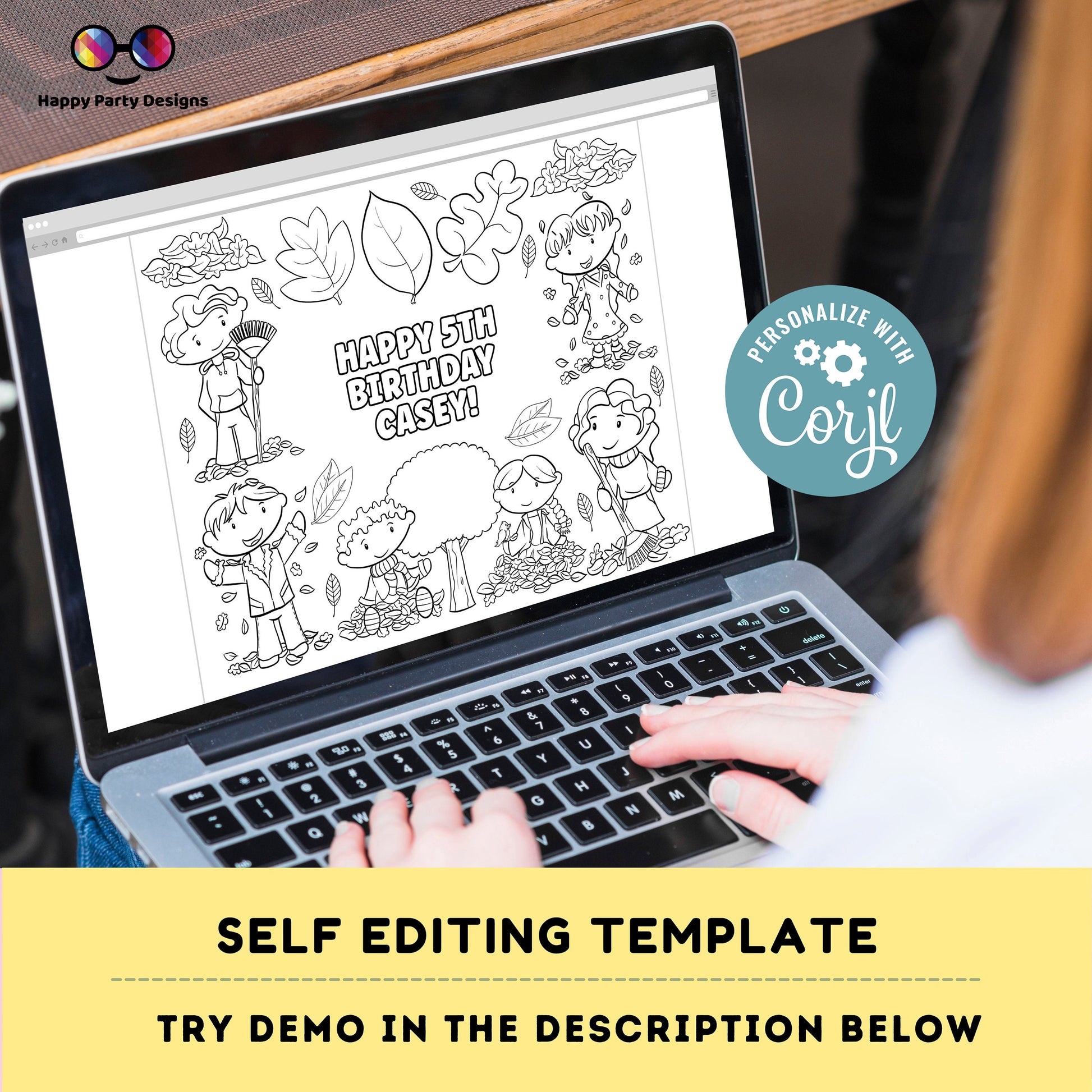 Editable fall leaves coloring page | Placemat coloring page | Any Age | Fall activity | fall themed activity placemat