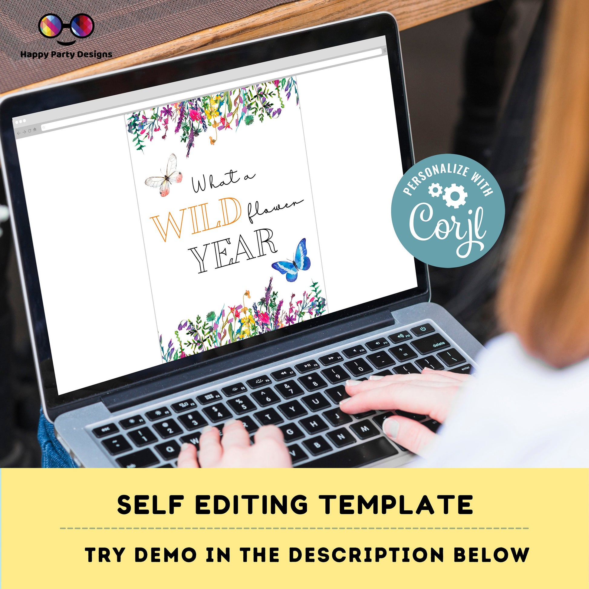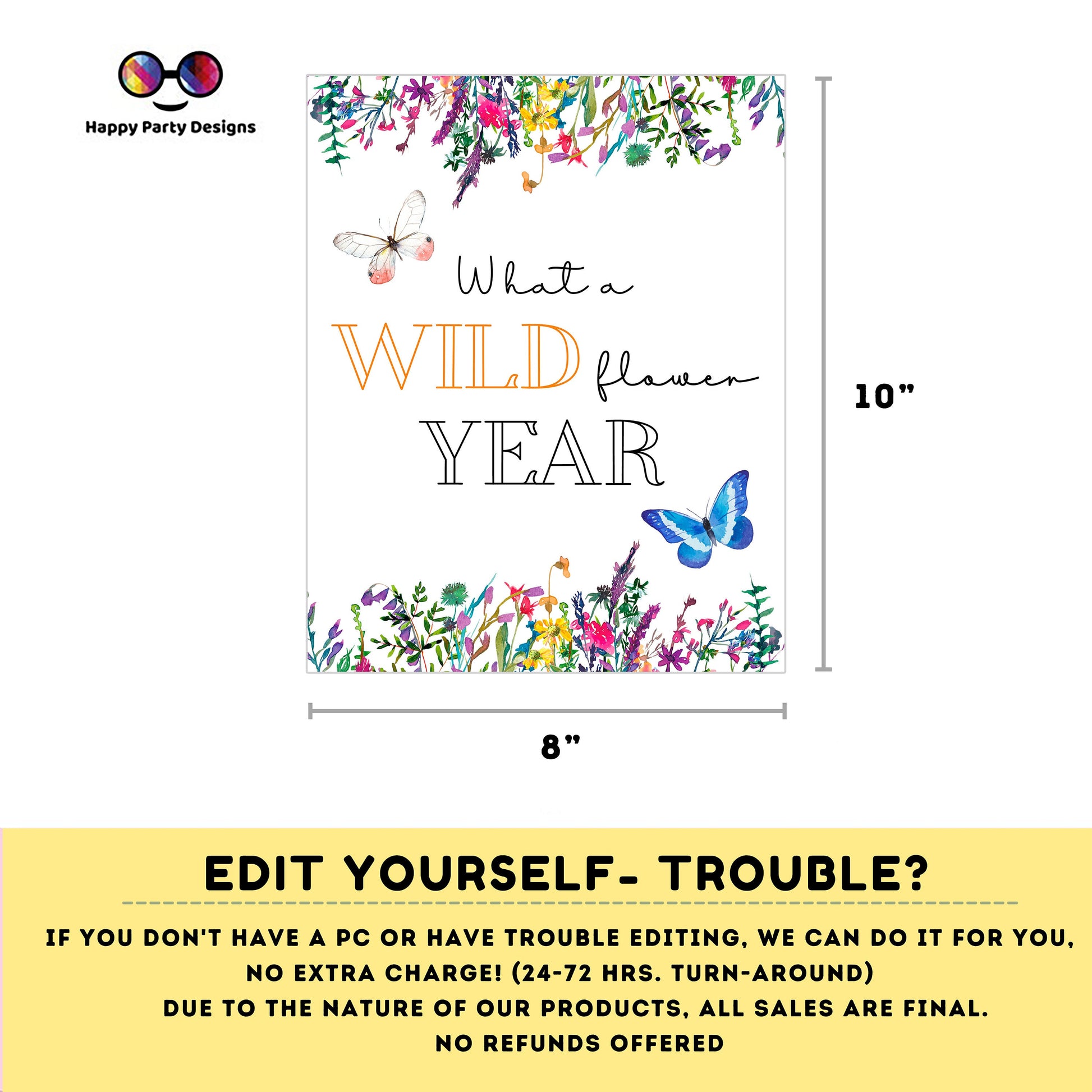 Editable First birthday Sign | Wildflower birthday | Spring birthday Decorations | baby Girl | Flower Sign | Butterfly party #K73