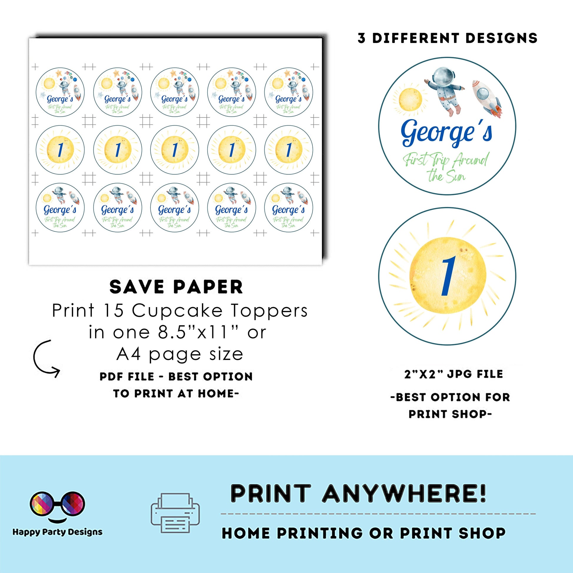Editable First Trip Around the Sun cupcake toppers | Outer Space birthday | Astronaut Birthday Party | Outer Space stickers #K5