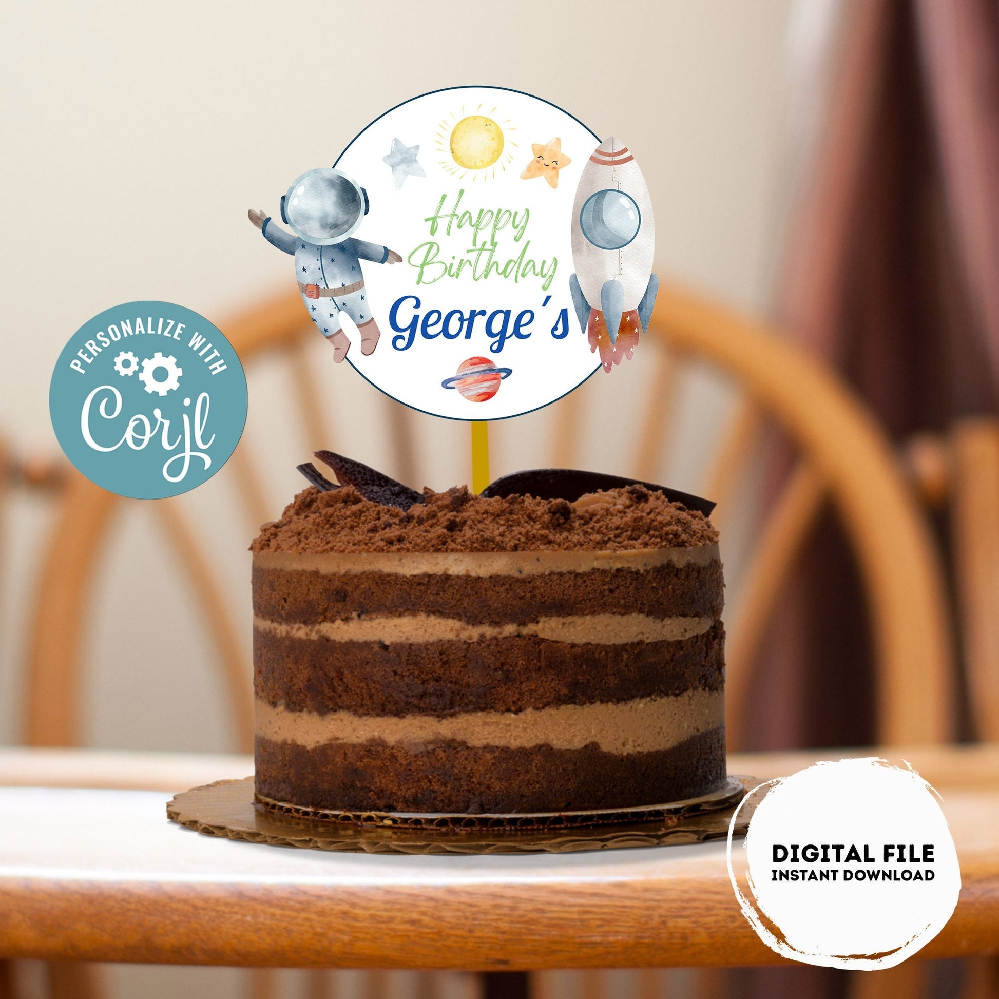 Editable First Trip Around the Sun Party Cake Topper | Outer Space Party Birthday Party Cake Topper Astronaut Cake Topper Centerpiece #K5