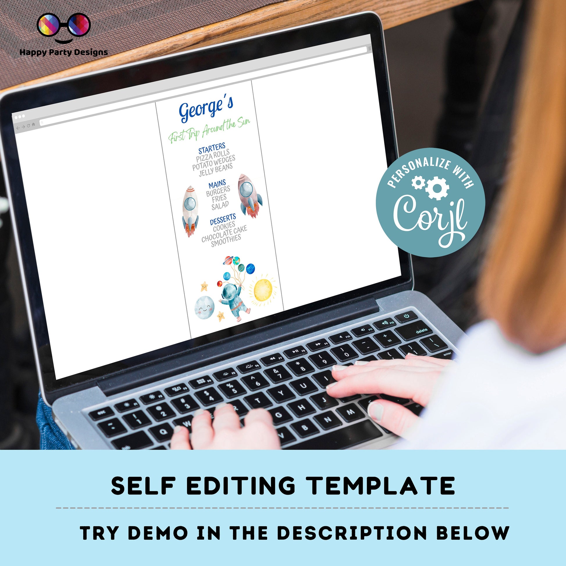 Editable First Trip Around the Sun Party Menu | Digital Outer Space printable menu | Birthday boy | Astronaut menu | Personalize #K5