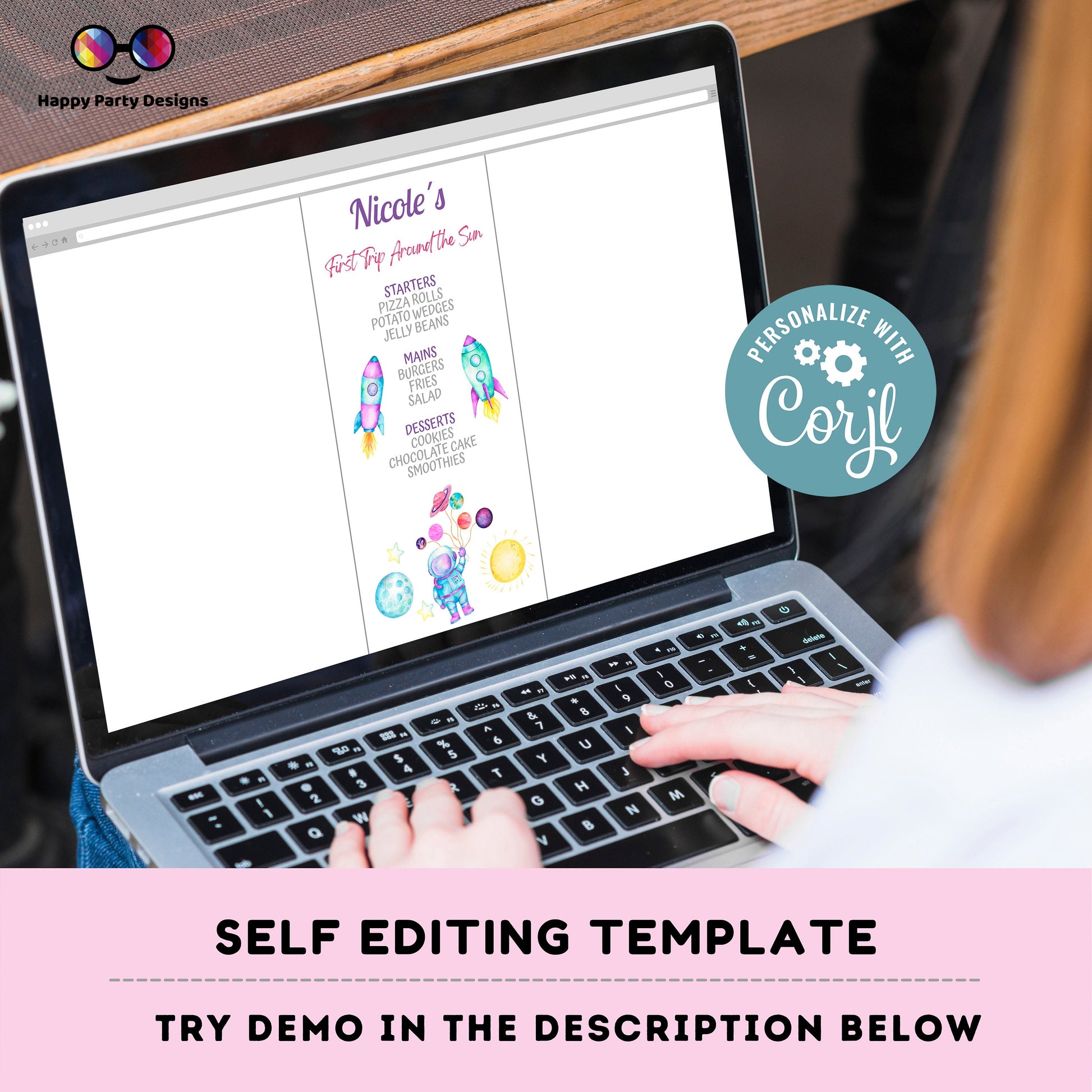 Editable First Trip Around the Sun Party Menu | Digital Outer Space printable menu | Birthday Girl | Astronaut menu | Personalize #K57