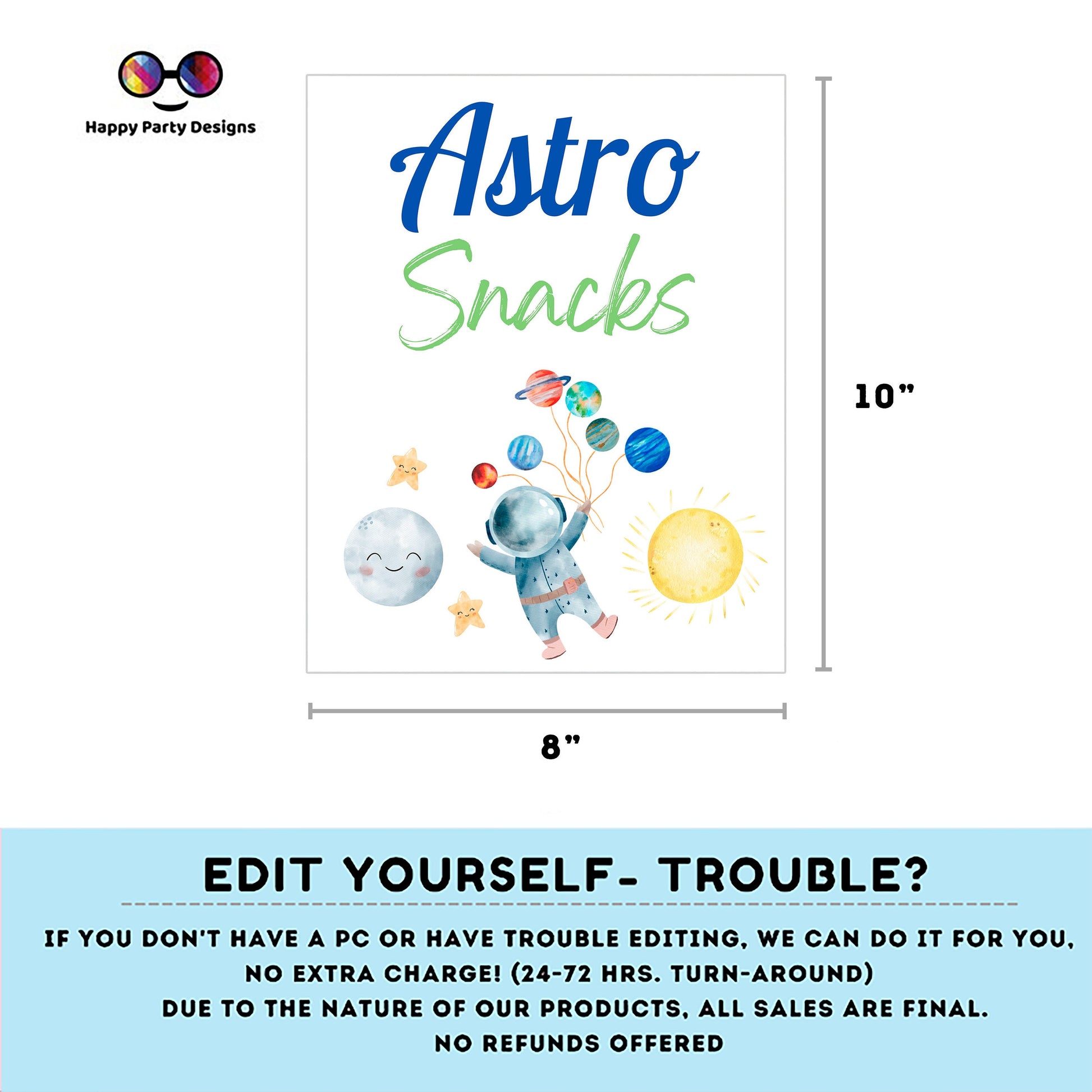 Editable First Trip Around the Sun Signs (3) | Outer Space birthday | Astronaut buffet Sign | Outer Space party Sign | Birthday Sign #K5