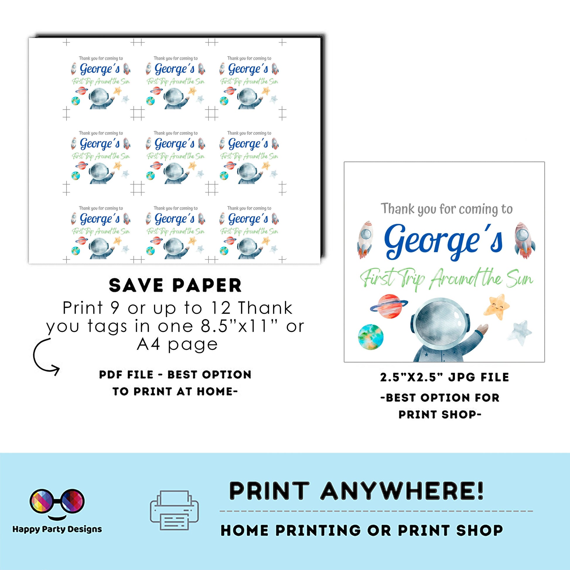 Editable First Trip Around the Sun Thank you tag | Editable Outer Space Party tag| Printable Template | Editable First Trip Around the Sun Party Favor tag | Outer Space editable favor tag | Digital Invitation | Instant download stickers