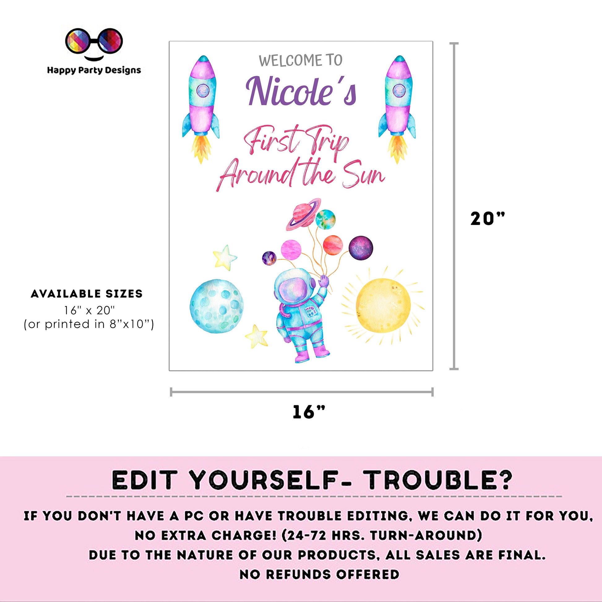 Editable First Trip Around the Sun Welcome Sign | Outer Space birthday | Astronaut birthday Decorations | First Year Welcome Sign | #K57
