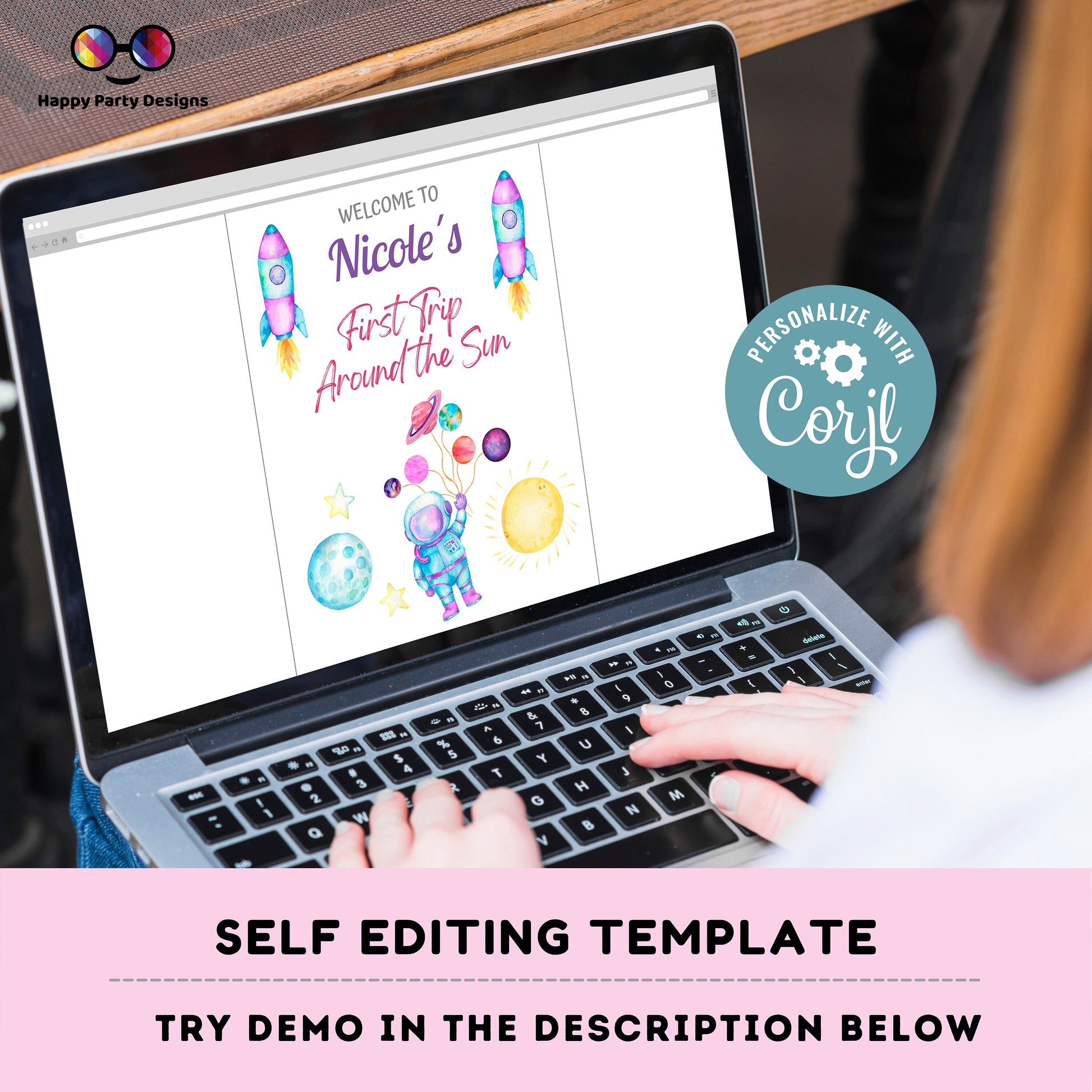 Editable First Trip Around the Sun Welcome Sign Template | First Trip Around the Sun Birthday Party Sign | Ouster Space Sign | Astronaut Birthday Sign | Download | Editable | First Trip Around the Sun party Welcome Template | Outer Space Cute Welcome Sign | Girl Welcome Poster | Boy Welcome Poster | Editable Template | Galaxy Welcome Sign
