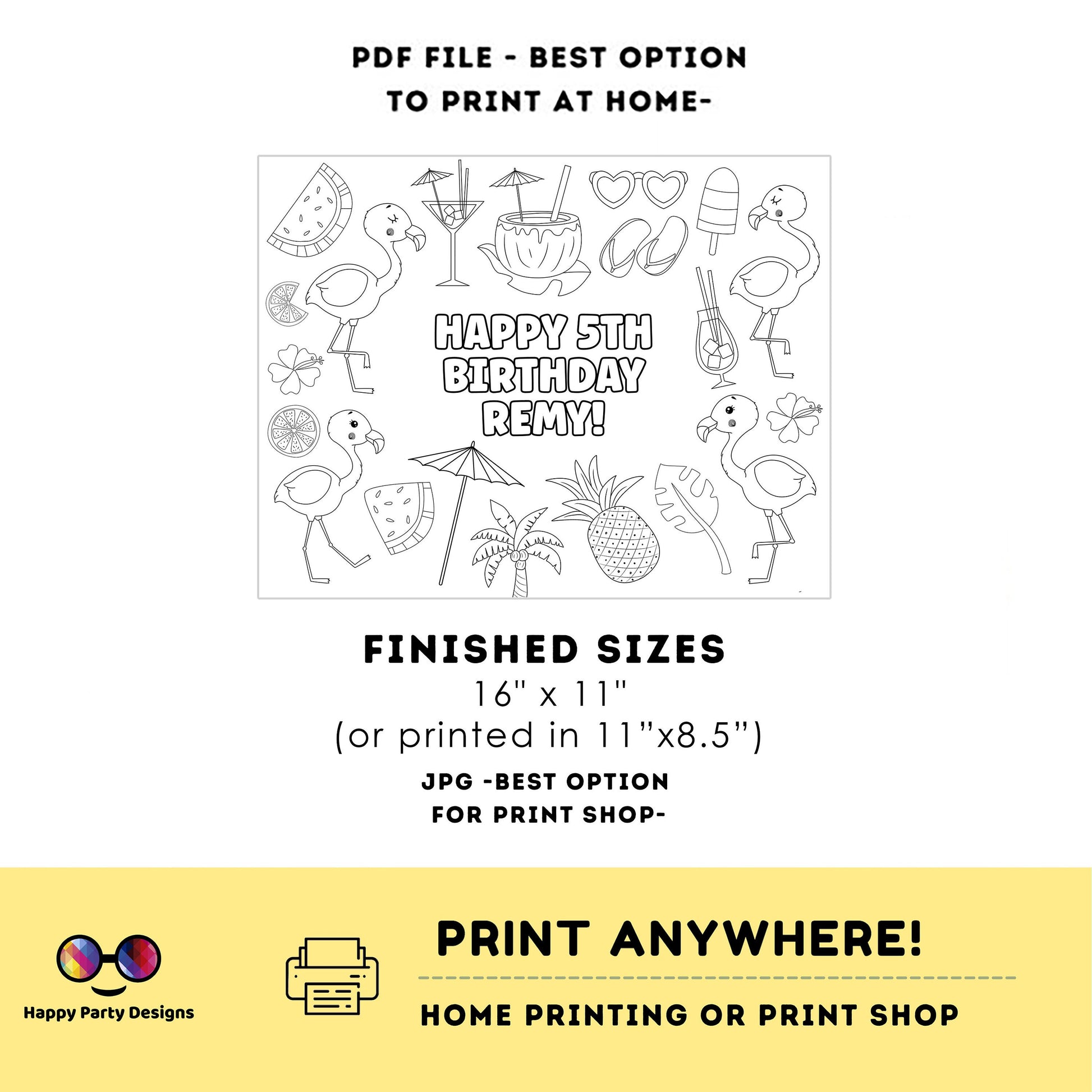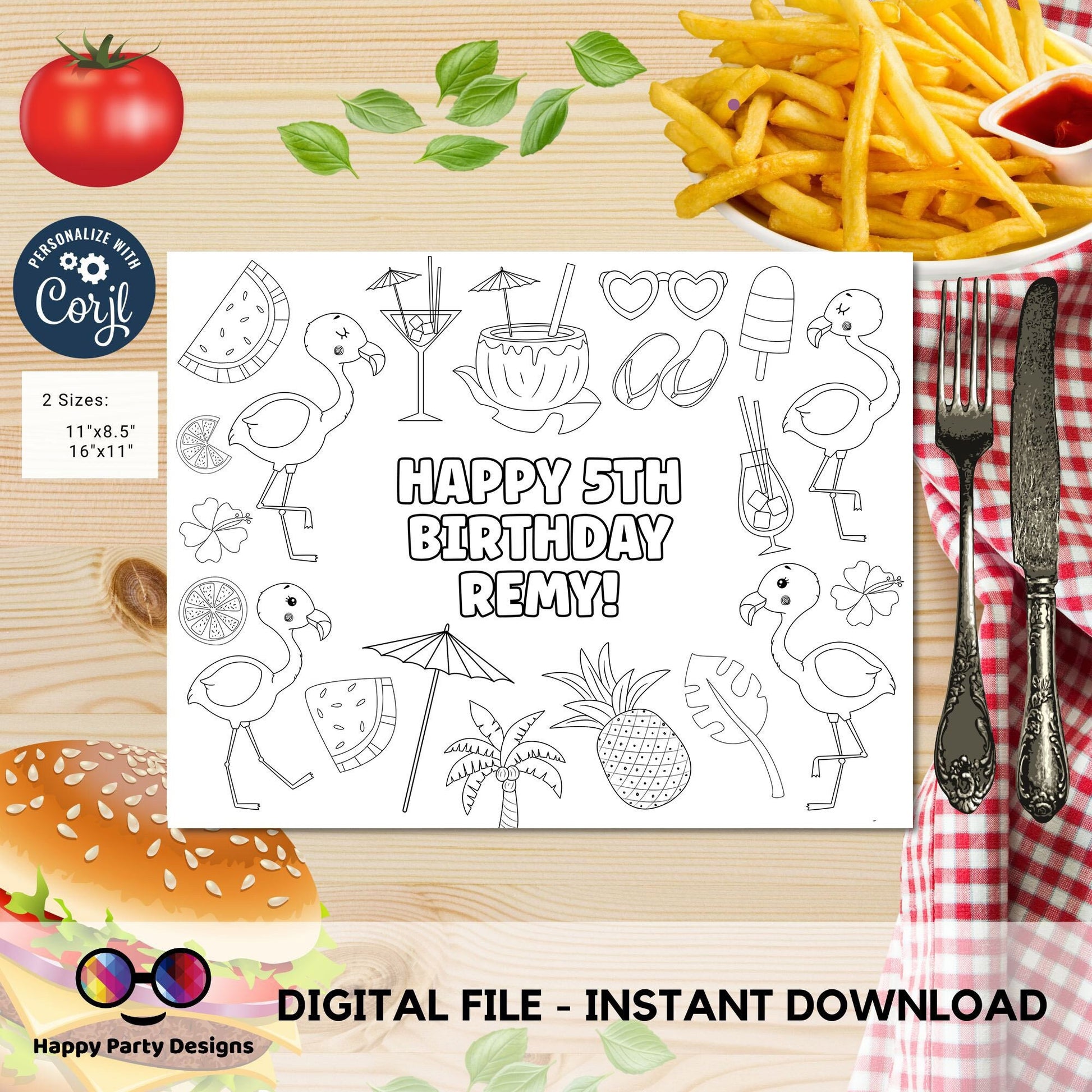 Editable Flamingo coloring page | Placemat coloring page | Any Age | Flamingo birthday | Tropical Party Activity #K114