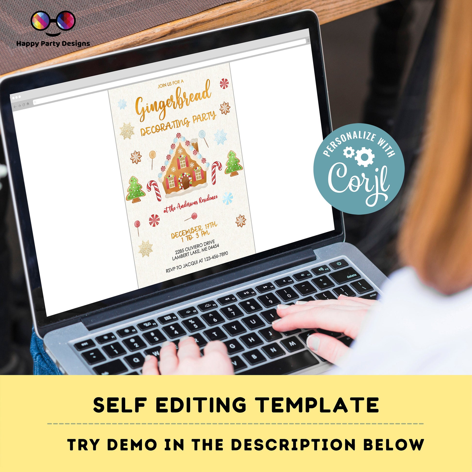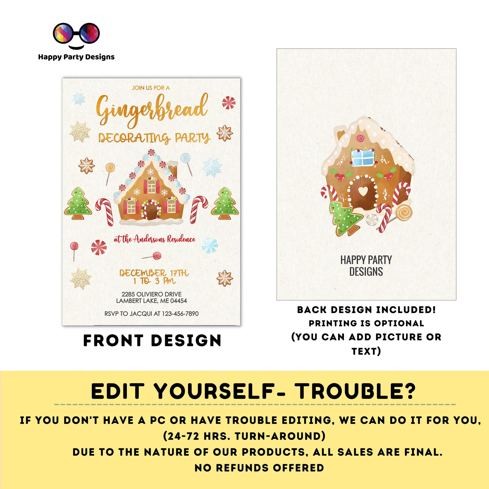 Gingerbread Decorating Invitation - Gingerbread House Party Holiday Invite 5x7 inch Editable Template Instant Download PDF, JPG, Editable Gingerbread House Decorating Party Invitation, Gingerbread Cookie Decorating Party Card, Holiday Cookie Party Card Instant Download.