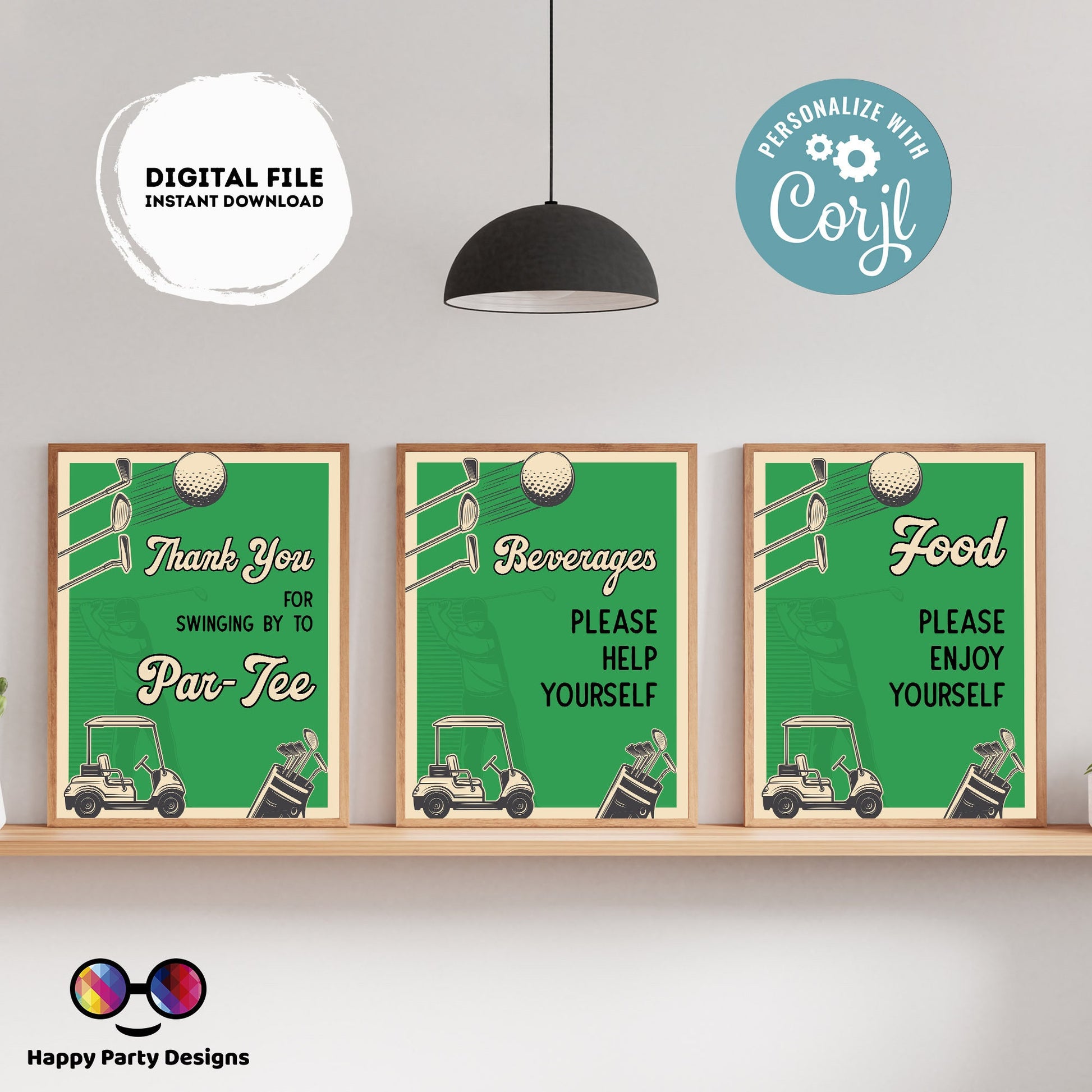 Editable golf party Signs (3) | par-tee birthday | Golf birthday Decorations | boy | retro golf buffet Sign | Party #K179