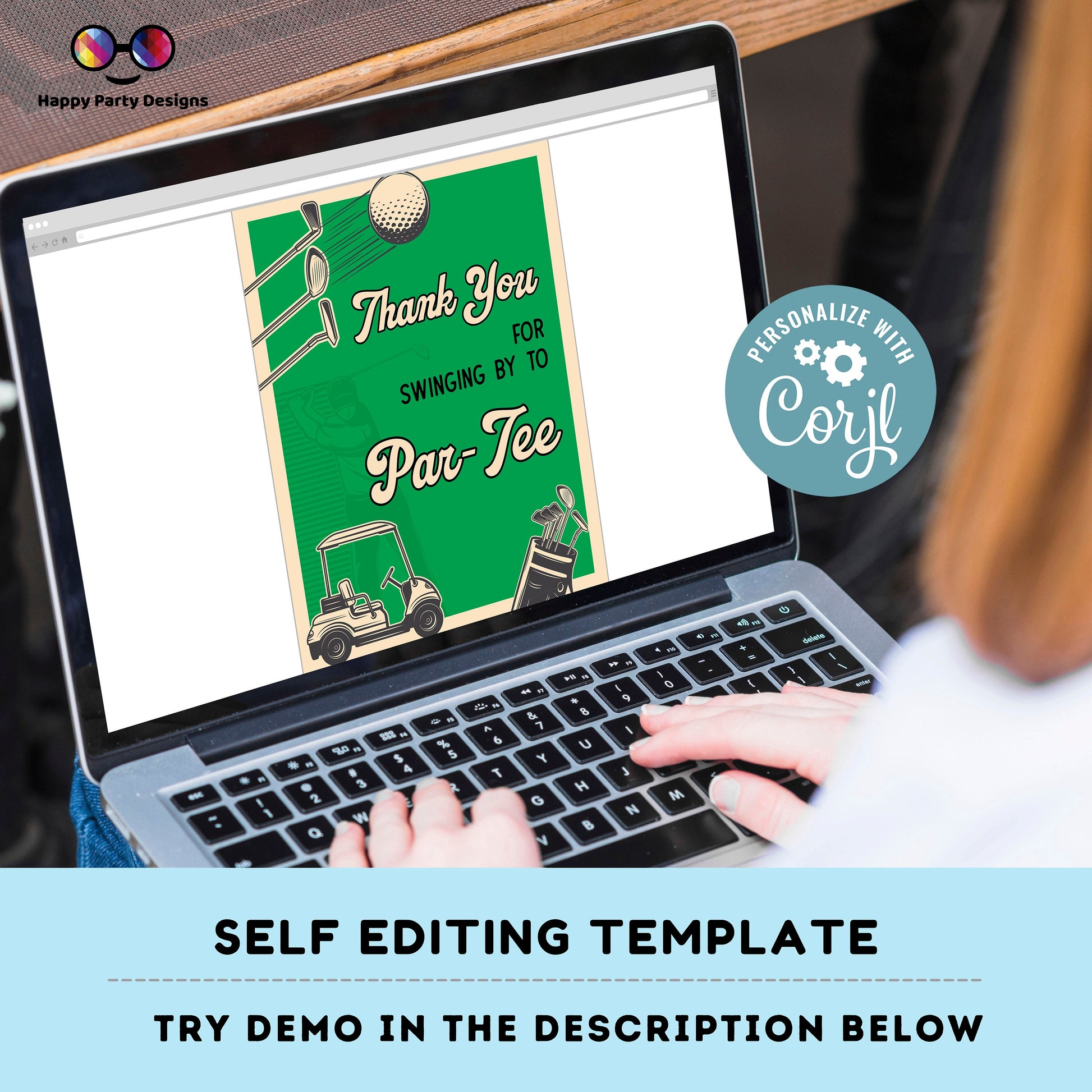 Editable Golf Birthday Welcome Sign 1st Birthday Boy Hole in One Party First Birthday Par-Tee Golfing Golf Template PRINTABLE Corjl.