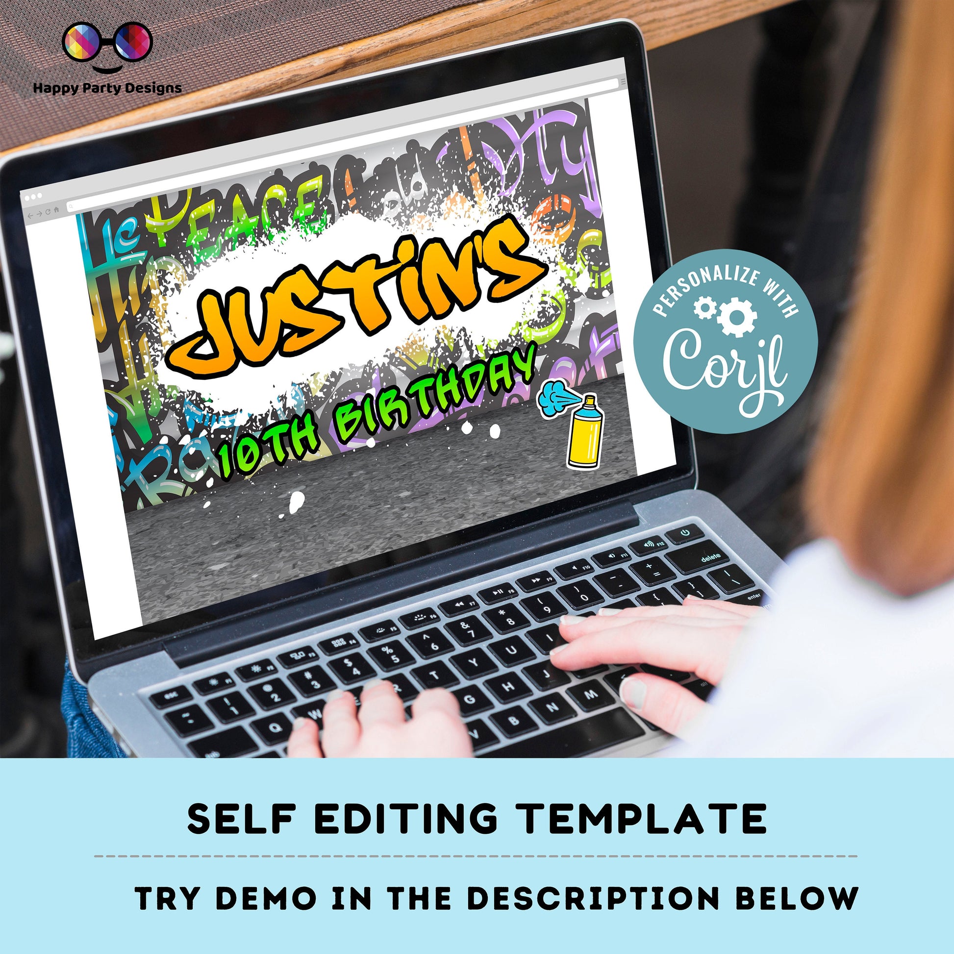 Editable graffiti Welcome Sign. Birthday boy . Editable template with Corjl.com