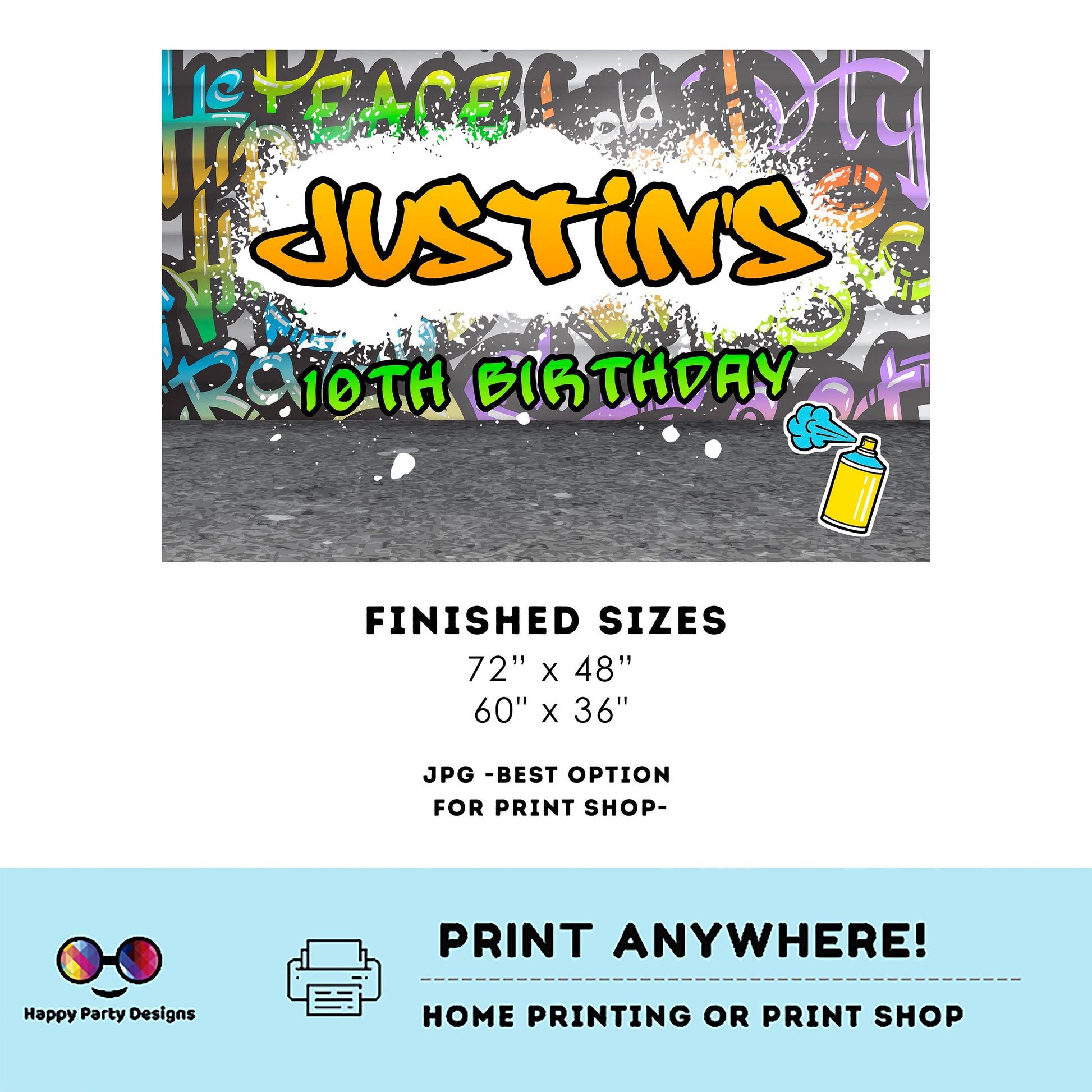 Editable Graffiti Backdrop Banner | Digital graffiti printable Backdrop Banner | Birthday Boy | Graffiti party | Personalize Online #K1