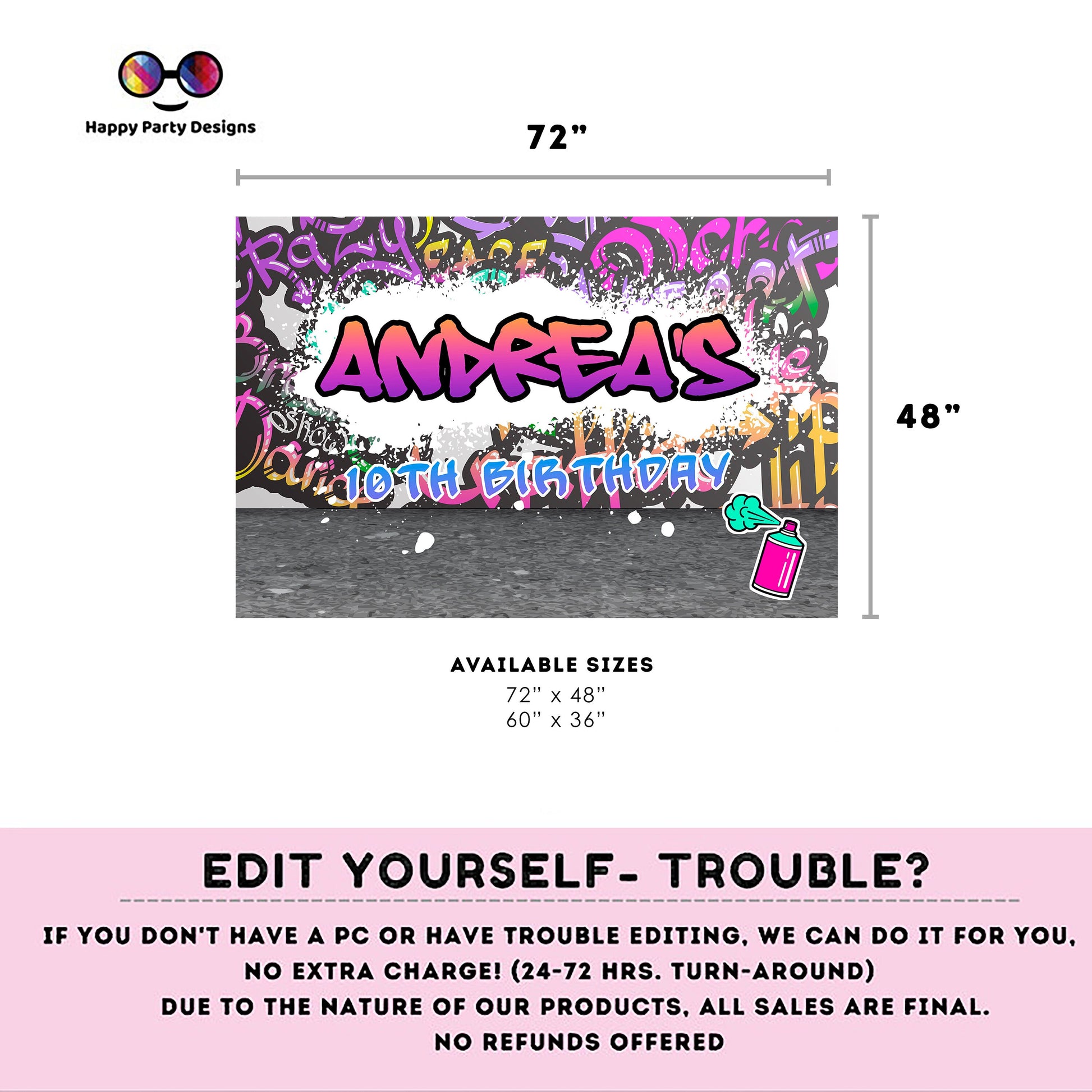 Editable Graffiti Backdrop Banner | Digital graffiti printable Pink Backdrop Banner | Birthday Girl | Graffiti party | Personalize Online