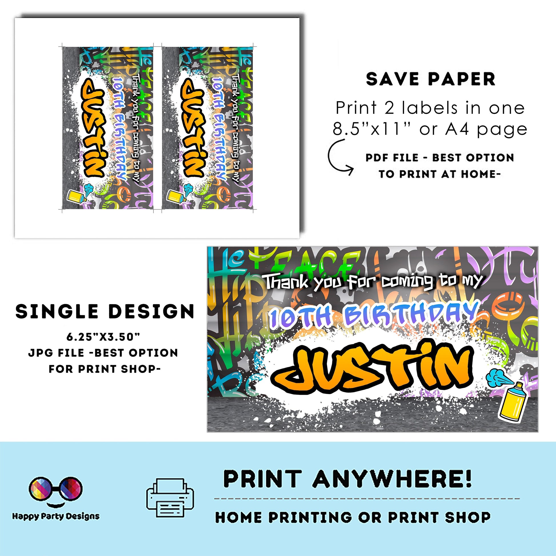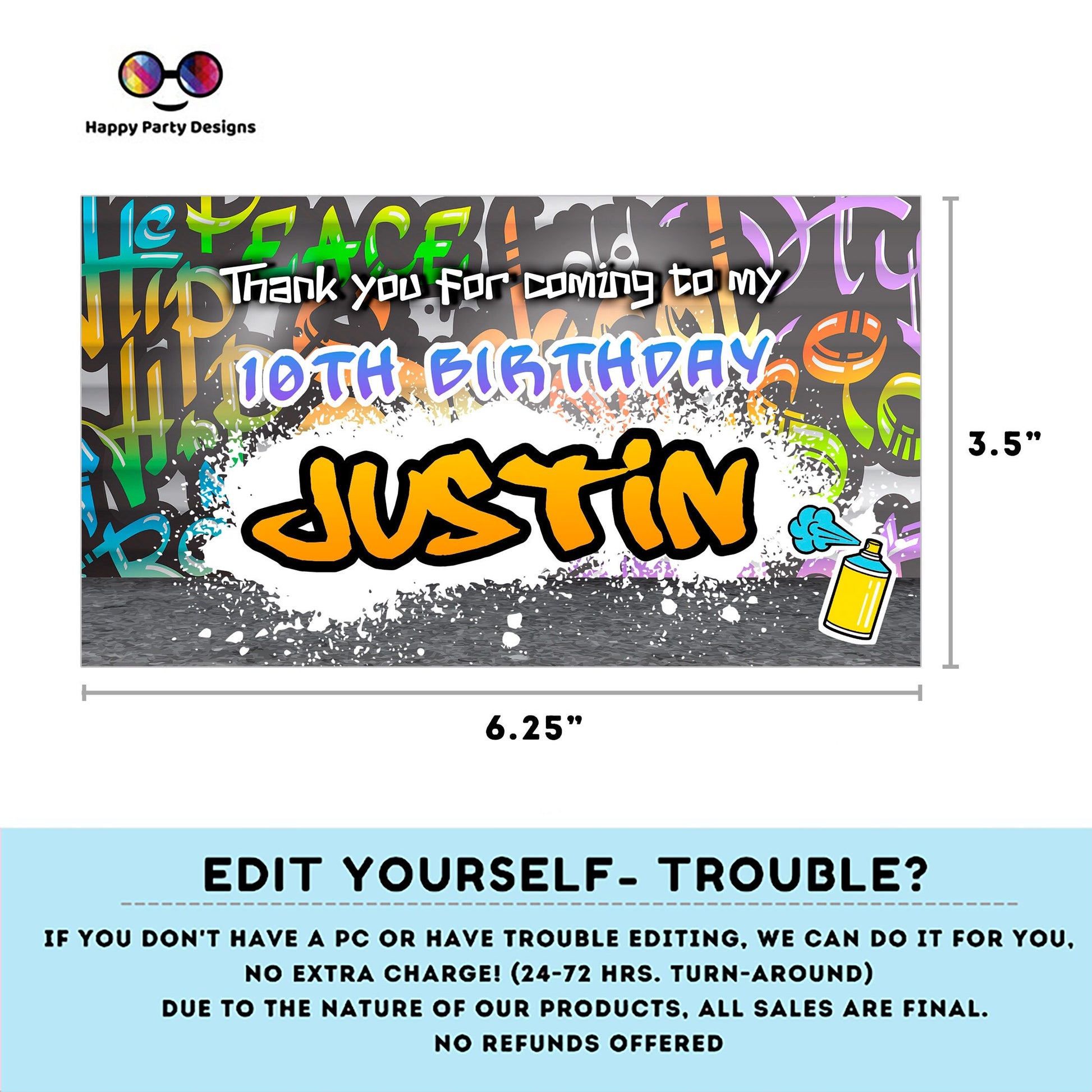 Editable graffiti Birthday Box label | graffiti party | favor box | graffiti birthday party | Boy birthday | Box to print #K1