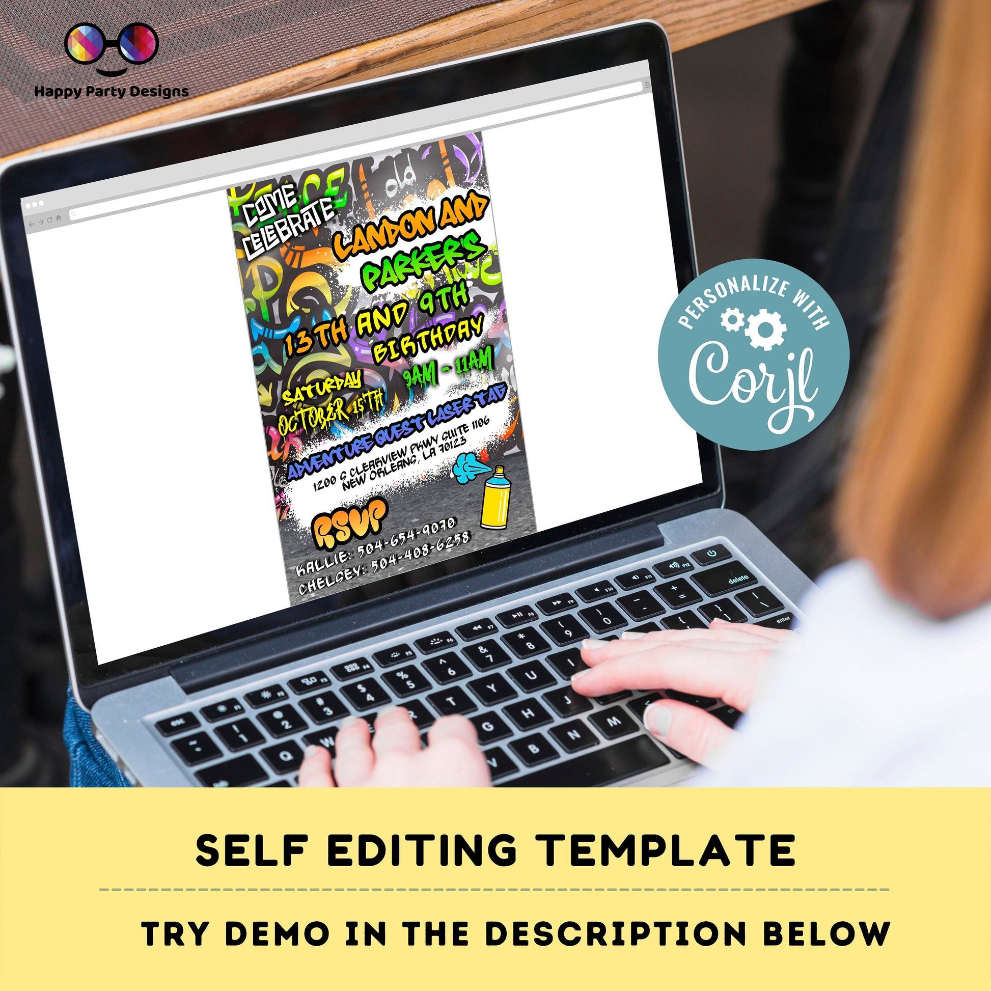 Editable Graffiti invitation | Digital graffiti printable invite | Birthday sibllings | Graffiti Invitation | Personalize Online #K1