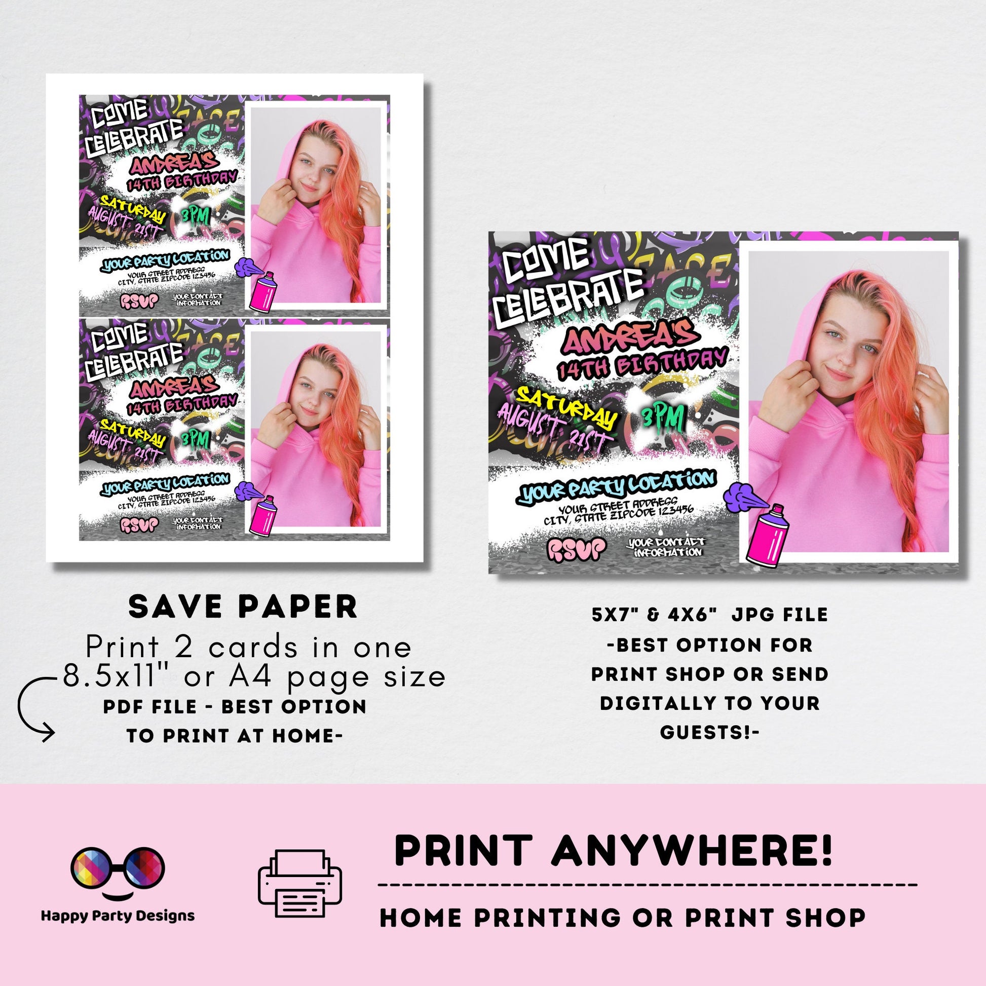 Editable Graffiti invitation with photo | Digital graffiti printable invite | Birthday girl | Graffiti Invitation | Personalize Online #K2