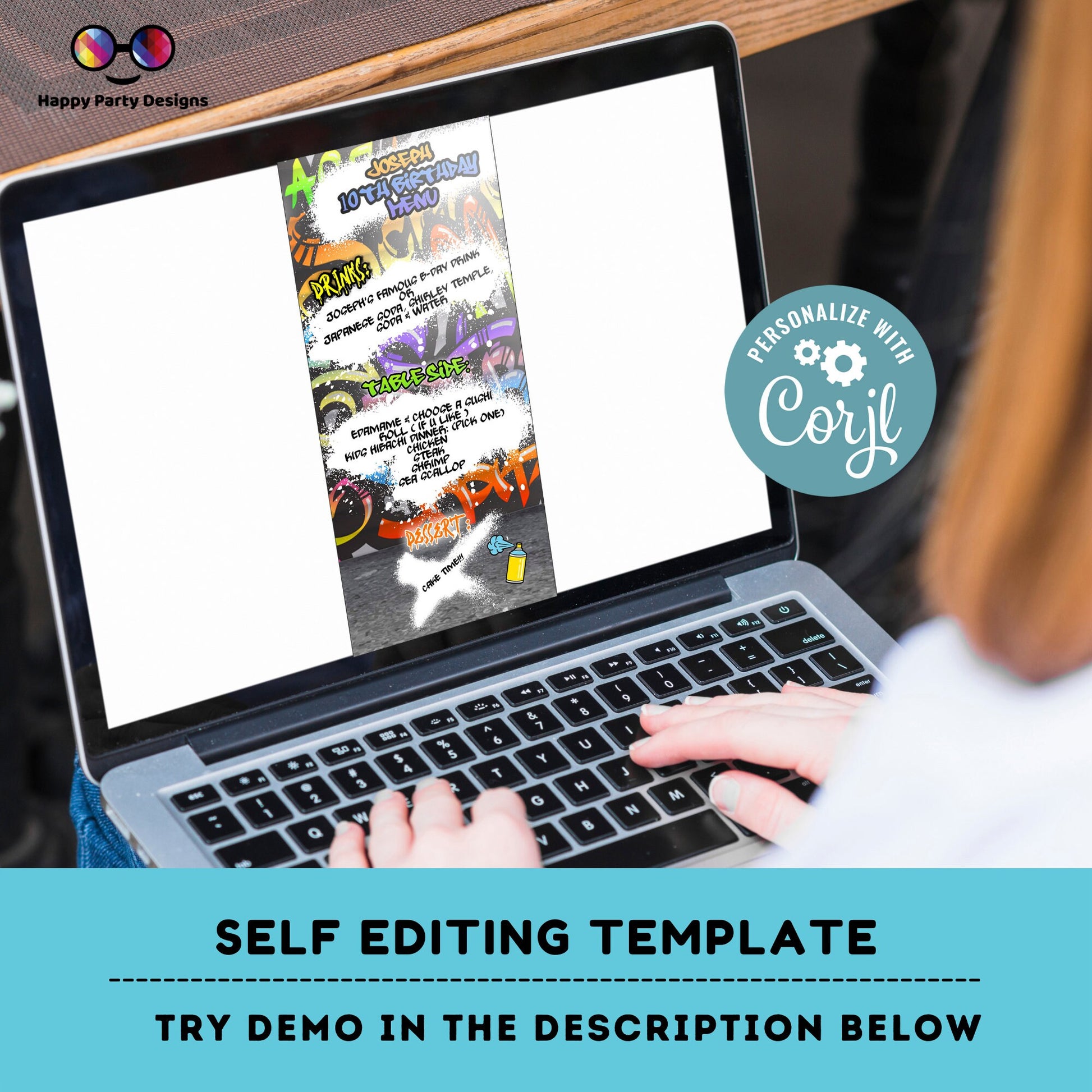 Editable graffiti menu. Birthday boy . Editable template with Corjl.com