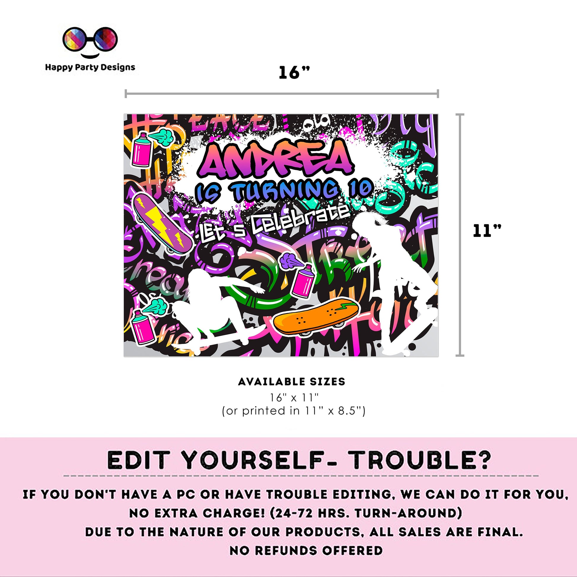 Editable Graffiti placemat | Digital graffiti printable placemat | Birthday girl | Graffiti placemat | Personalize Online #K2