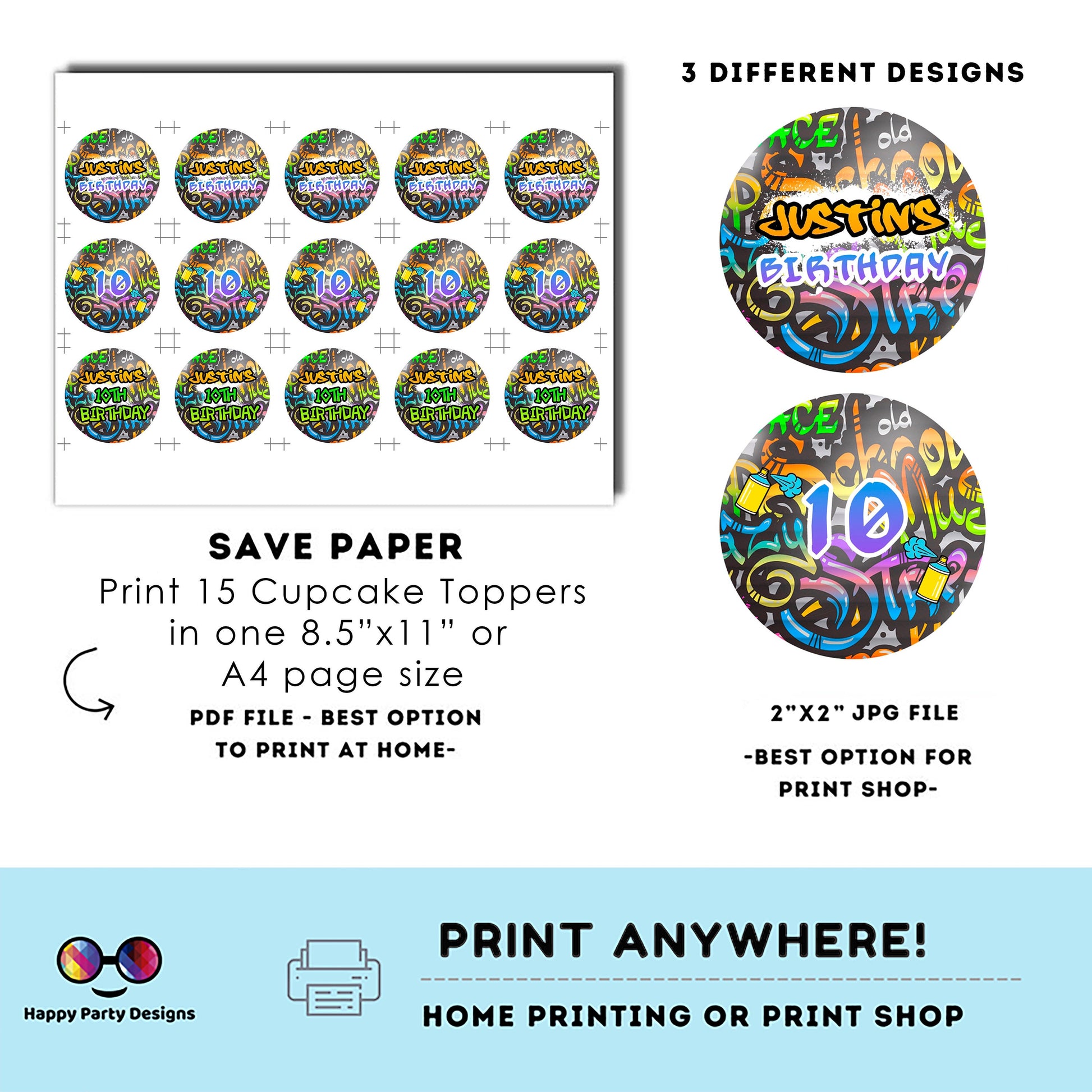 Editable Graffiti Round cupcake toppers | Graffiti birthday | Graffiti Birthday Party | Graffiti themed | Boy Birthday Party | stickers #K1