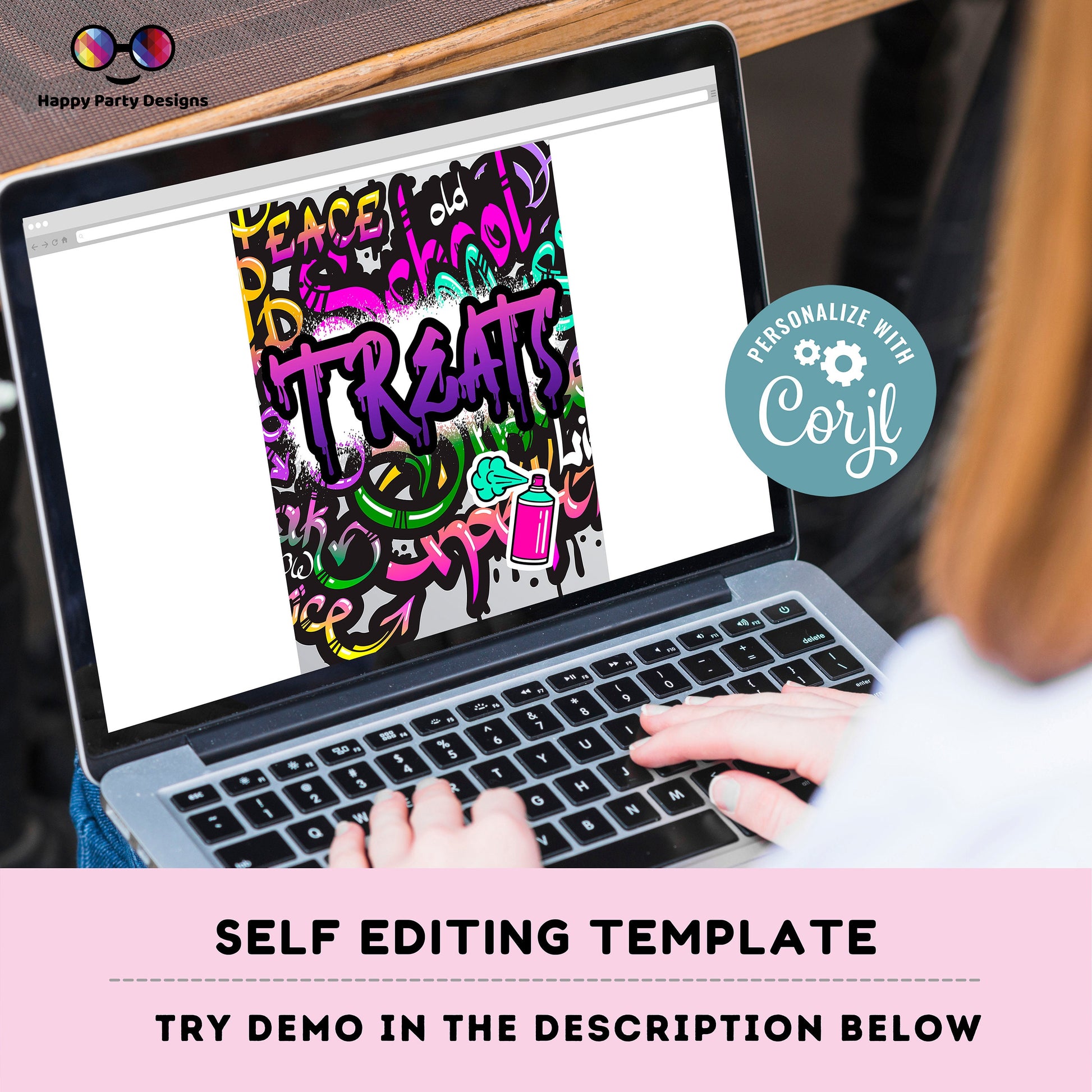Editable graffiti party Sign. Birthday girl . Editable template with Corjl.com