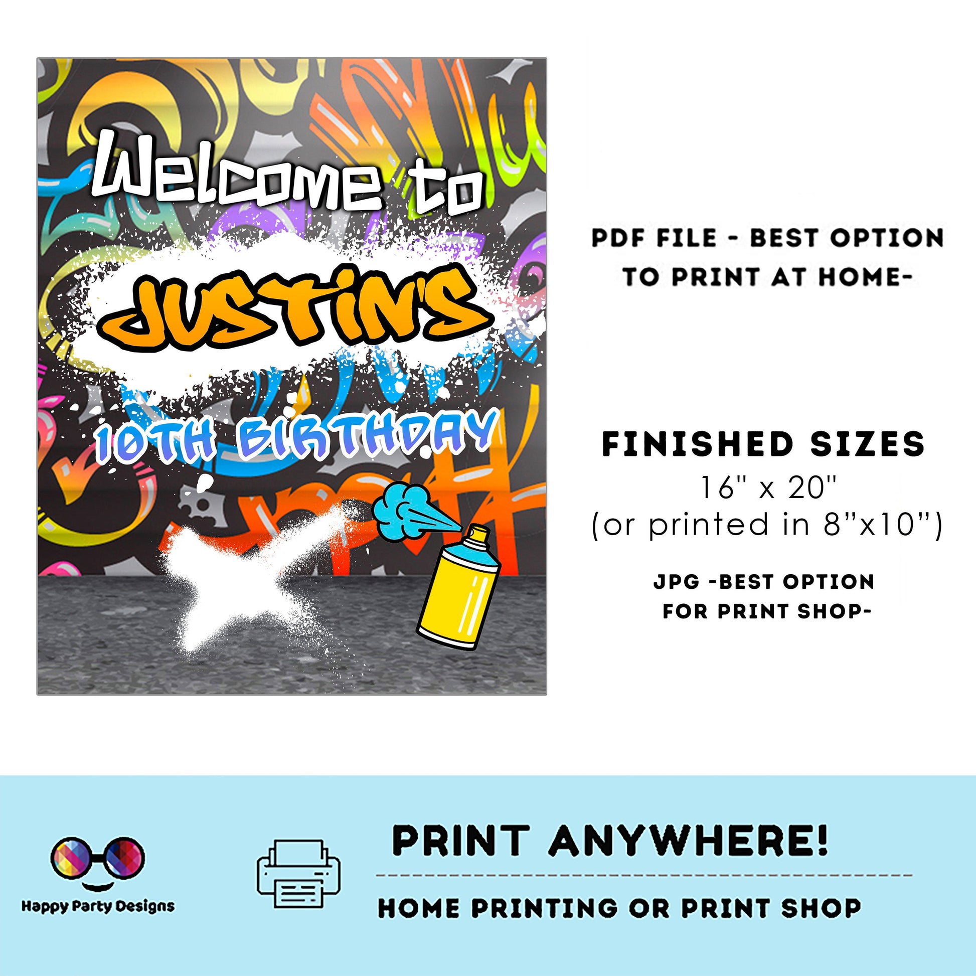 Editable graffiti Welcome Sign. Birthday boy . Editable template with Corjl.com