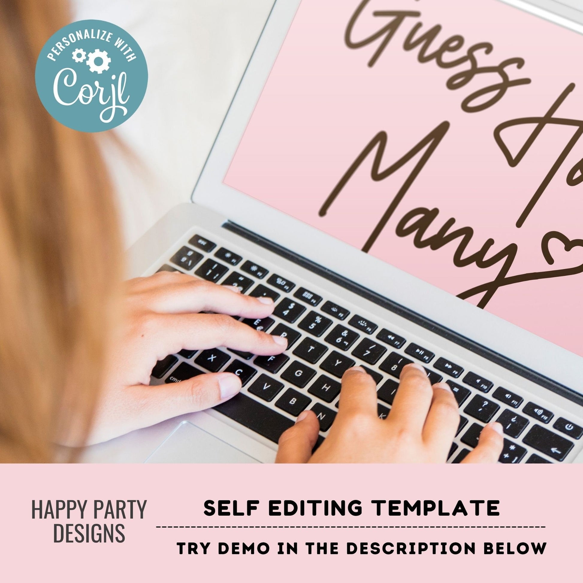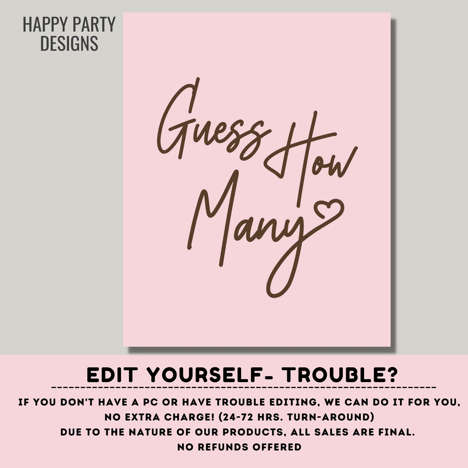 Editable guess how many Sign | bridal shower | baby shower game | Girl | text 100% editable | Pink shower | How Many Printable #B44
