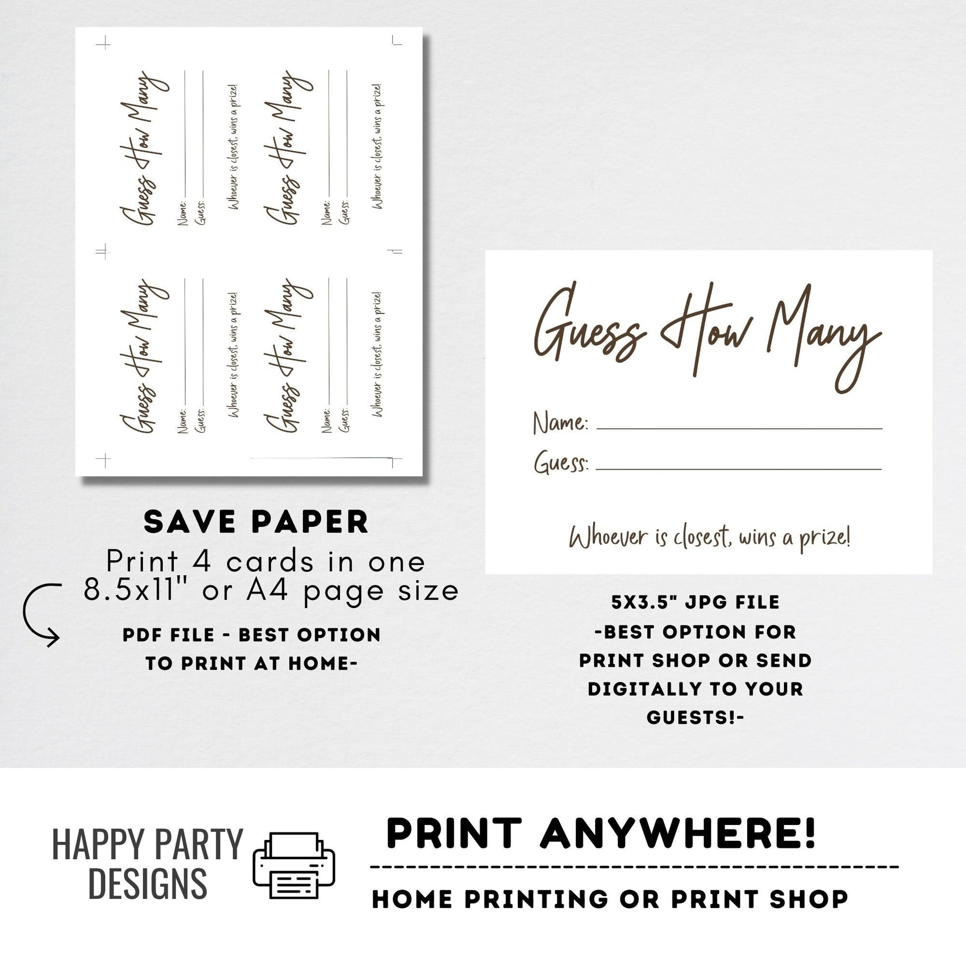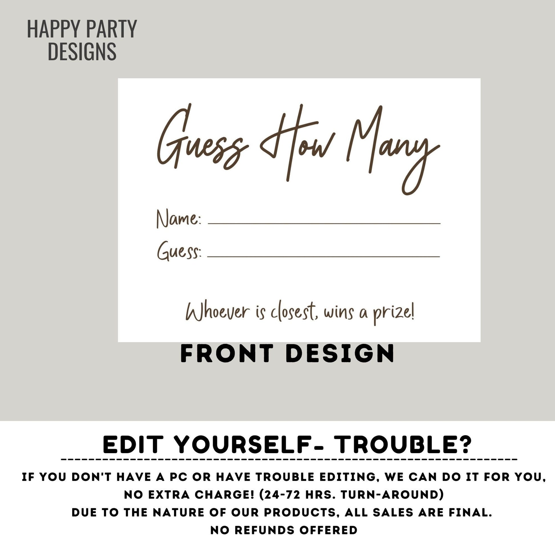 Editable Guessing Game Cards | Printable Guess Cards | Baby Shower Guessing Game Activity | Guess How Many Bridal Shower | Printable #B44