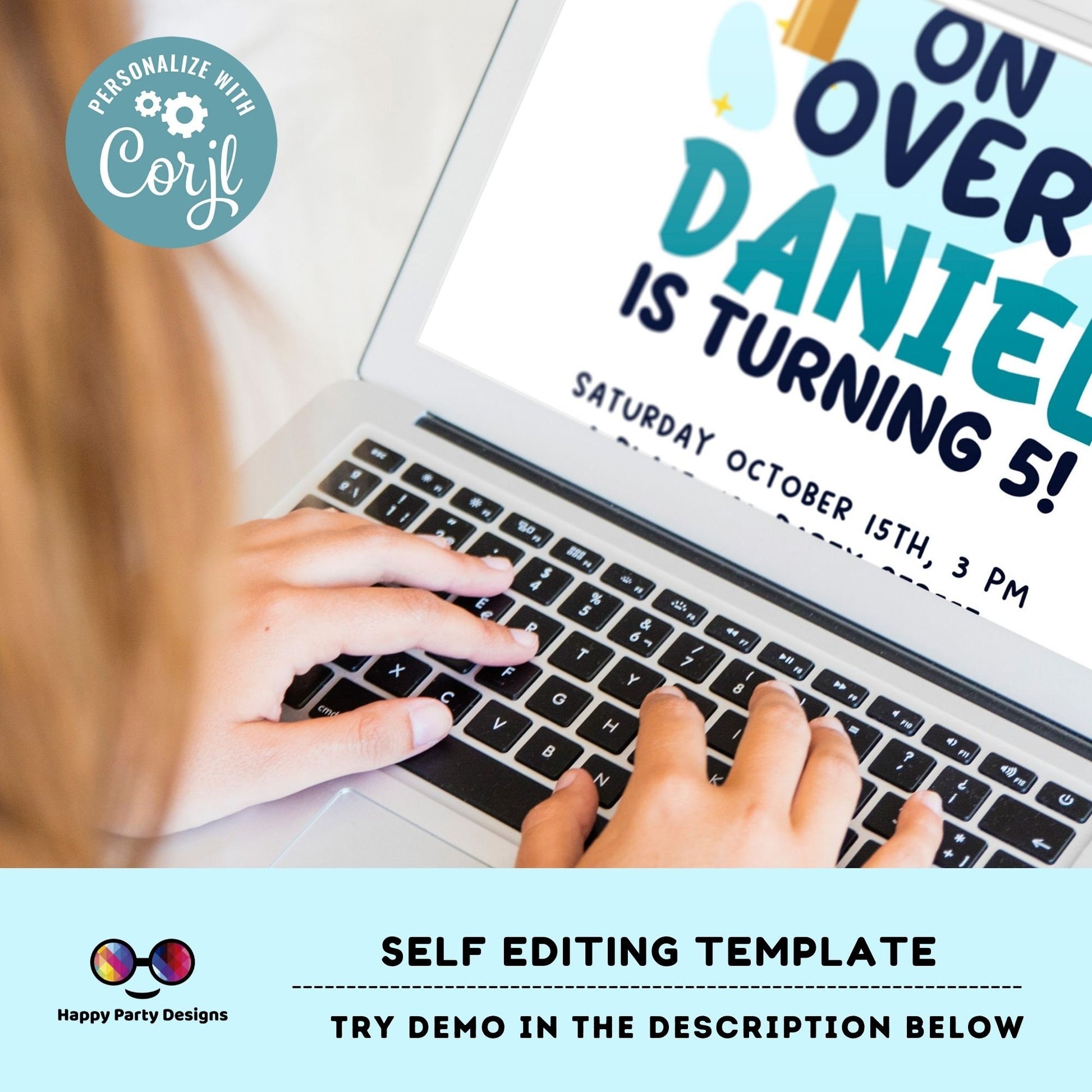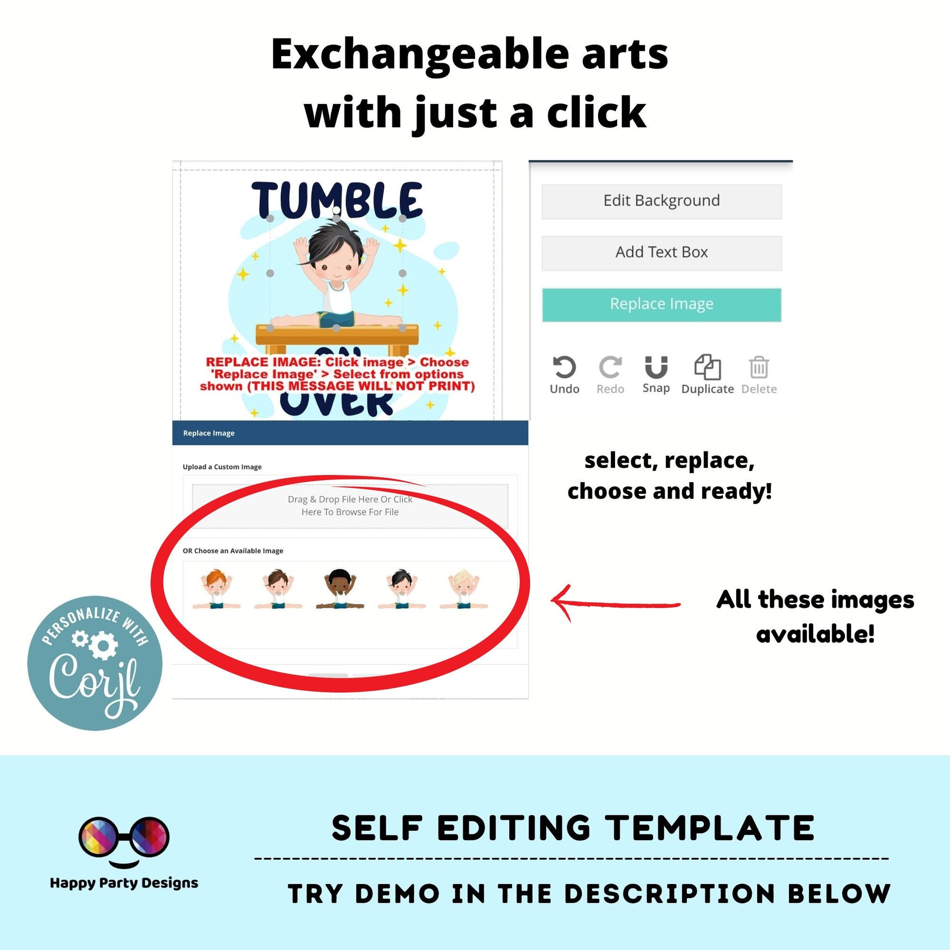 Editable Gymnastics Birthday Invitation | Sports Invitation | Boy Tumbling Gymnasts Birthday Invite | tumble on over Party Invite #K232